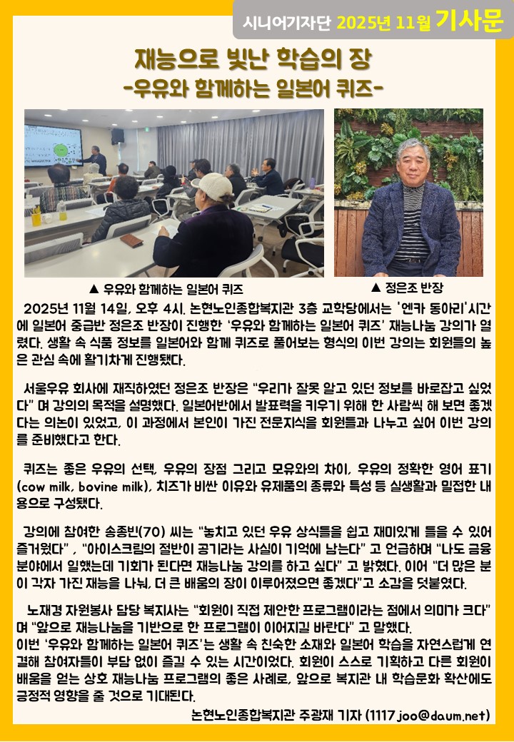 2025년 11월 기사-재능으로 빛난 학습의 장(주광재 기자)