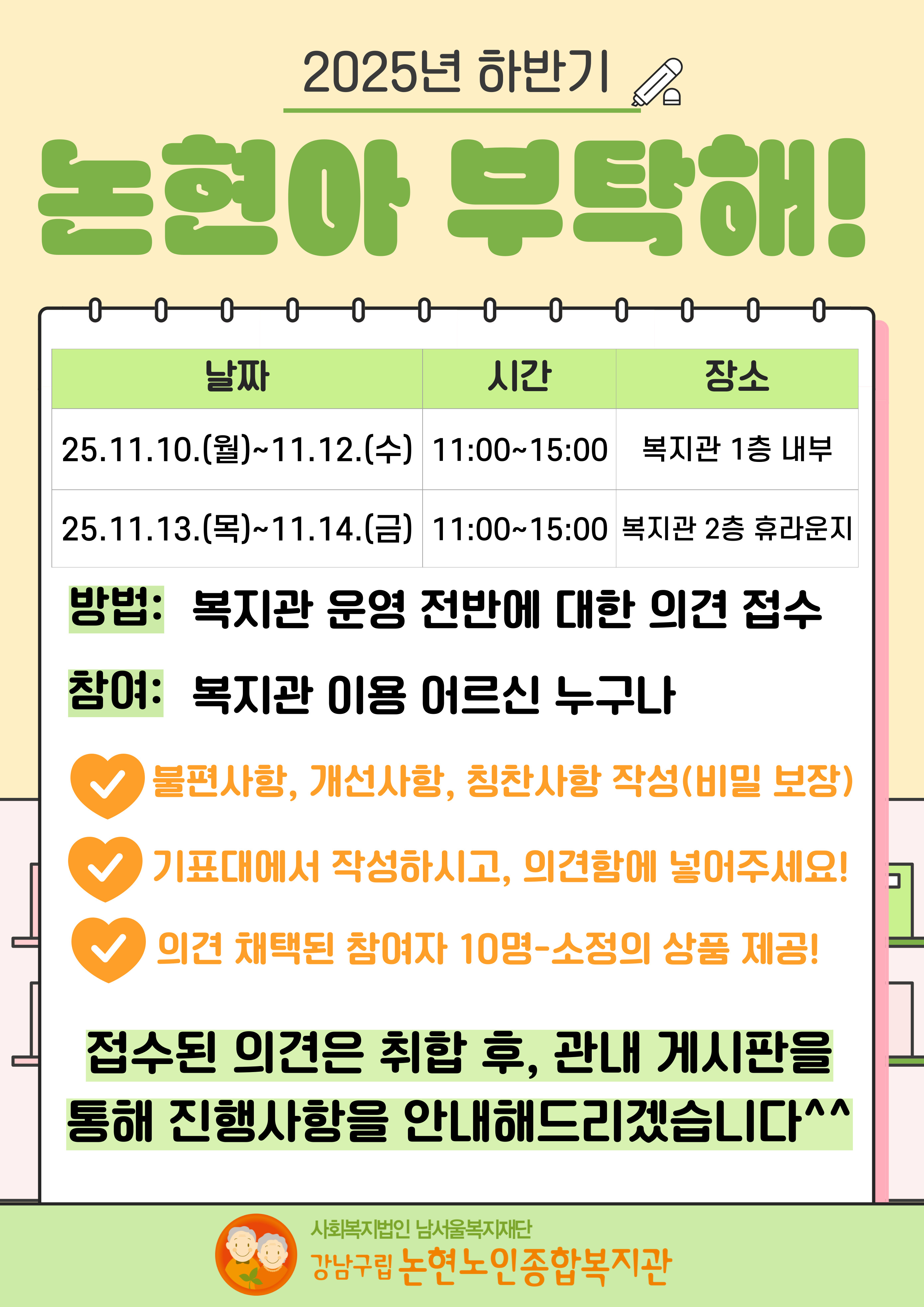 - 2025년 하반기 논현아부탁해 참여 안내 [상담및정서생활지원사업] 2025-11-04