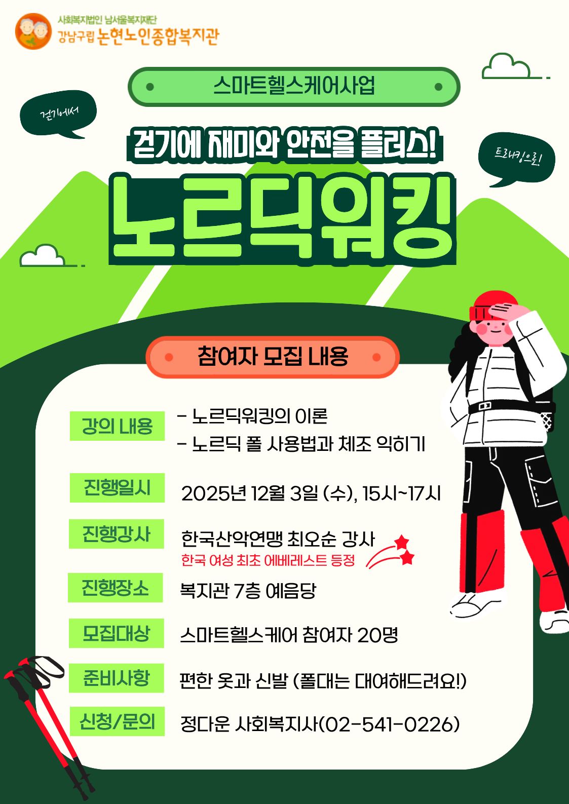 - 노르딕워킹 특강 참여자 모집 [스마트헬스케어사업] 2025-11-25
