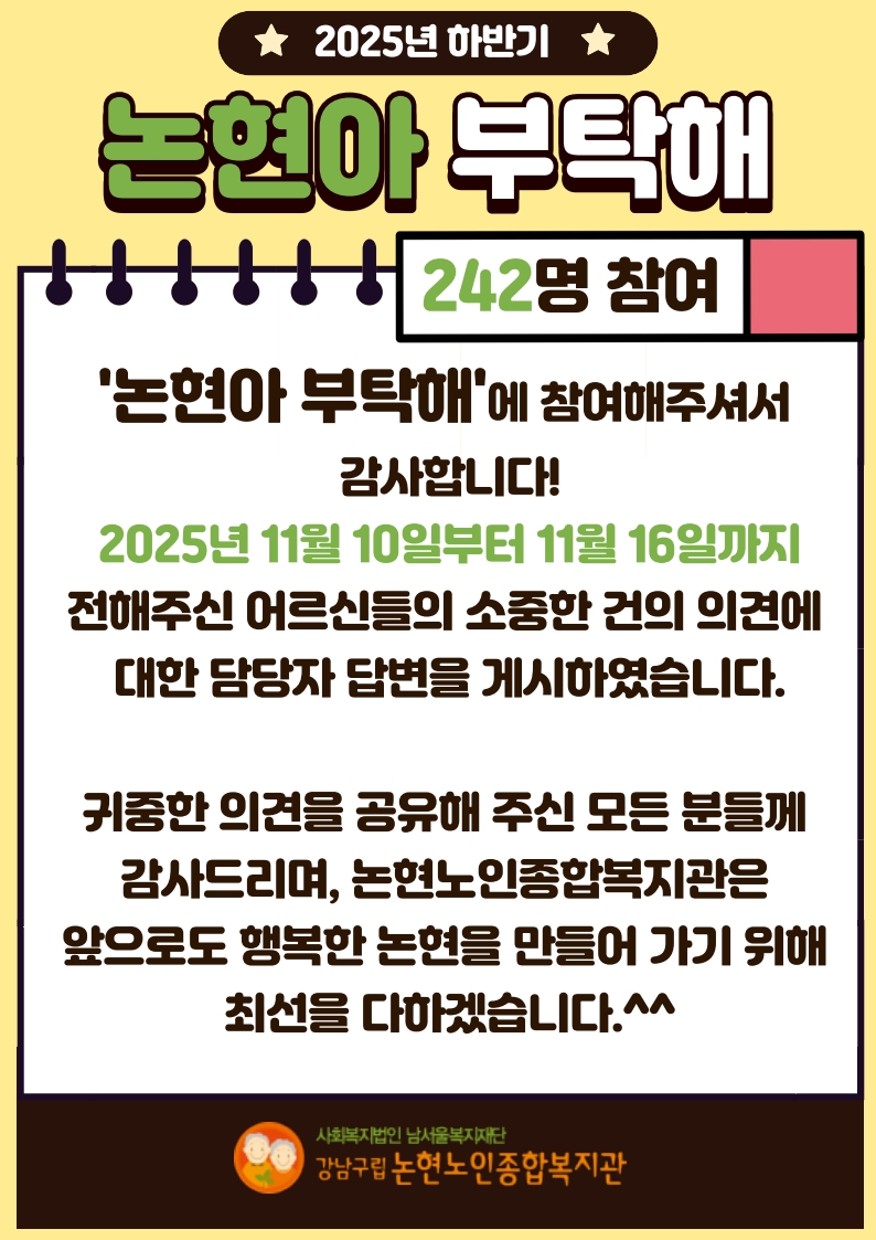 - 2025년 하반기 논현아부탁해-건의 의견에 대한 담당자 답변 안내 2025-11-28