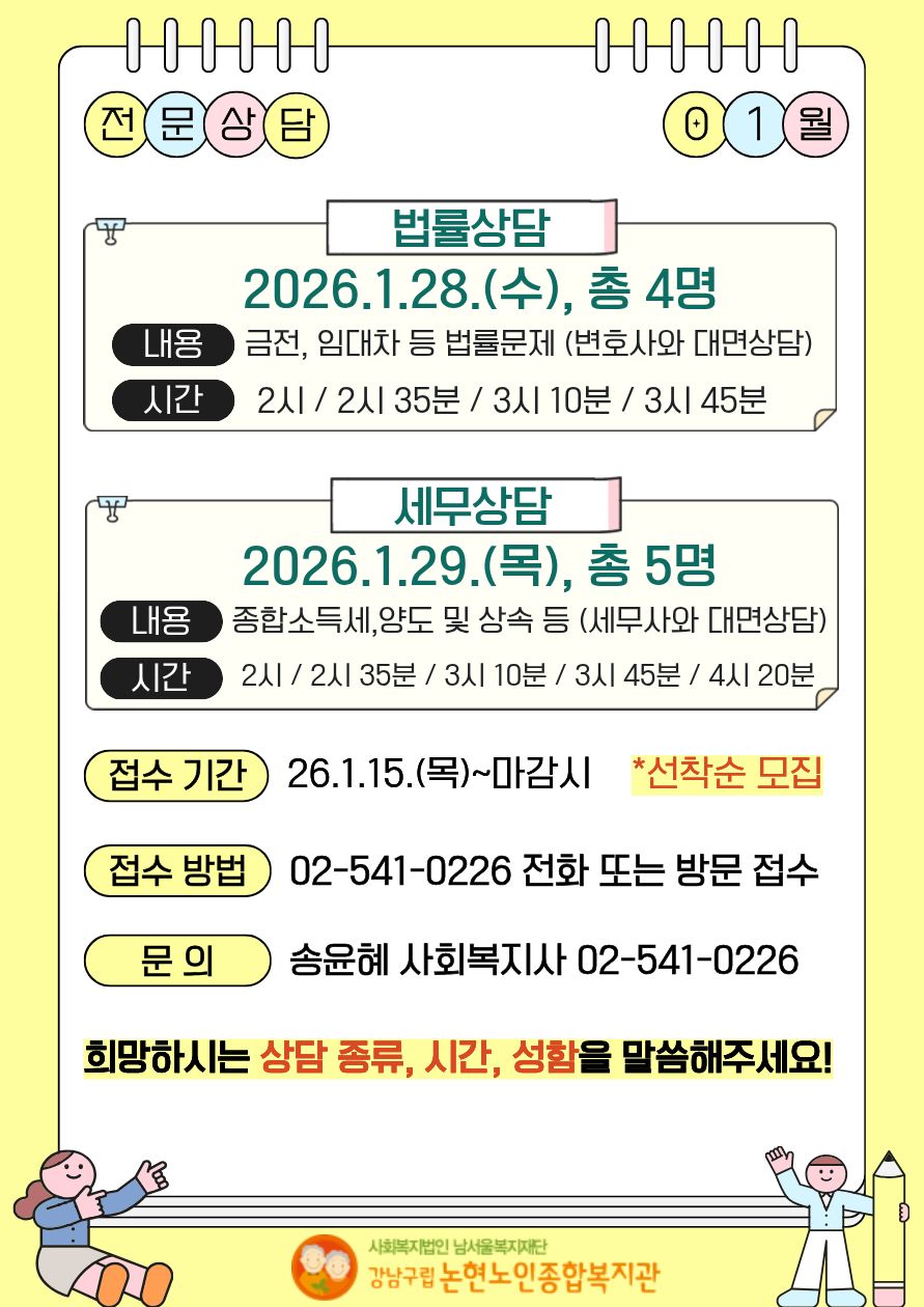 - 1월 전문상담(법,세무) 참여자 모집 [상담및정서생활지원사업] 2026-01-15