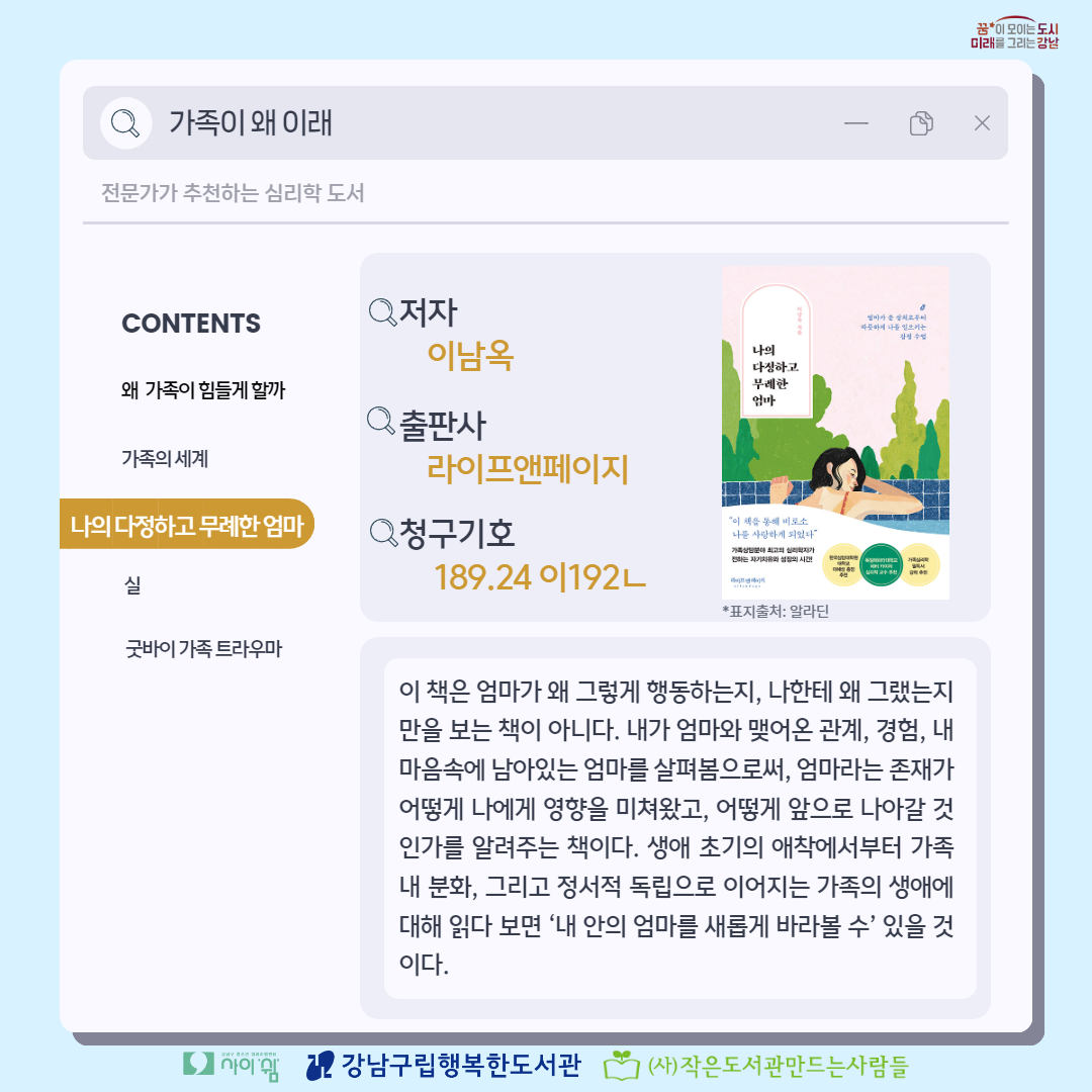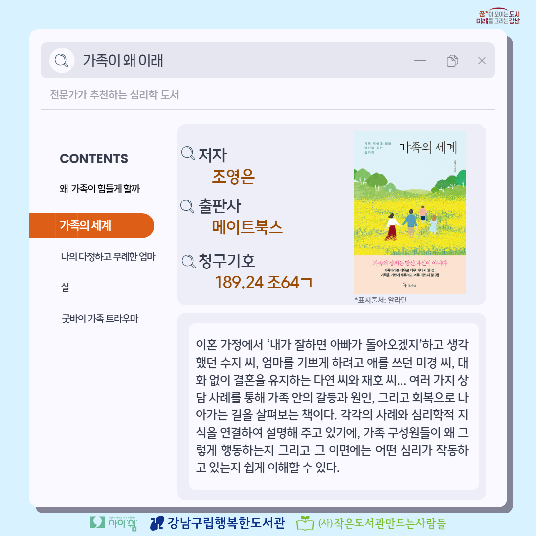 ![2024-2 임상심리전문가가 추천하는 심리학 도서 [가족이 왜 이래] 전자점자뷰어보기](/assets/images/common/braille_btn.png)