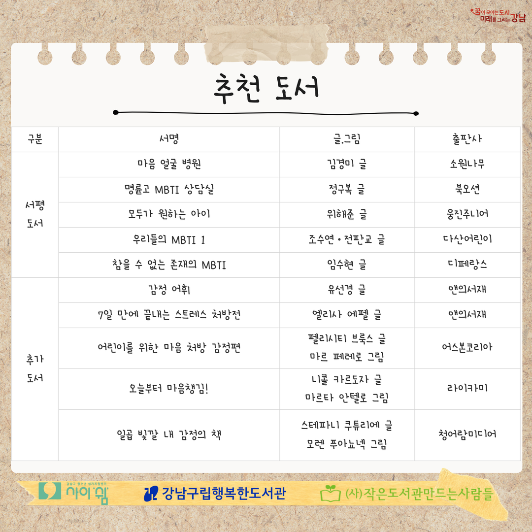2025년 3분기 청소년을 위한 북큐레이션 「나의 마음, 너의 마음, 우리 마음」