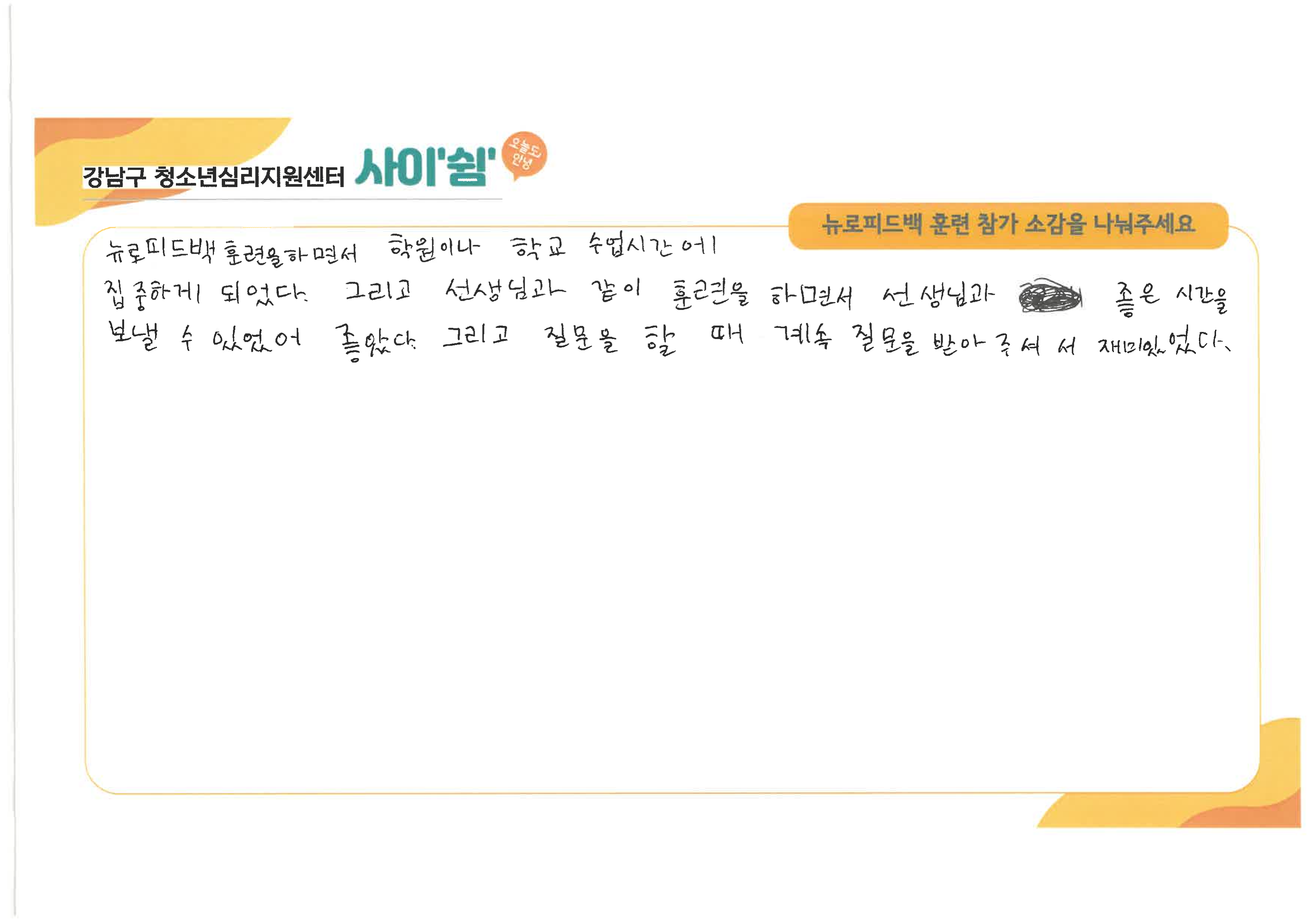 일상과 학습 상황에서 집중하는 데 도움이 되었고, 전보다 안정감을 느낀다는 이야기도 많았습니다.