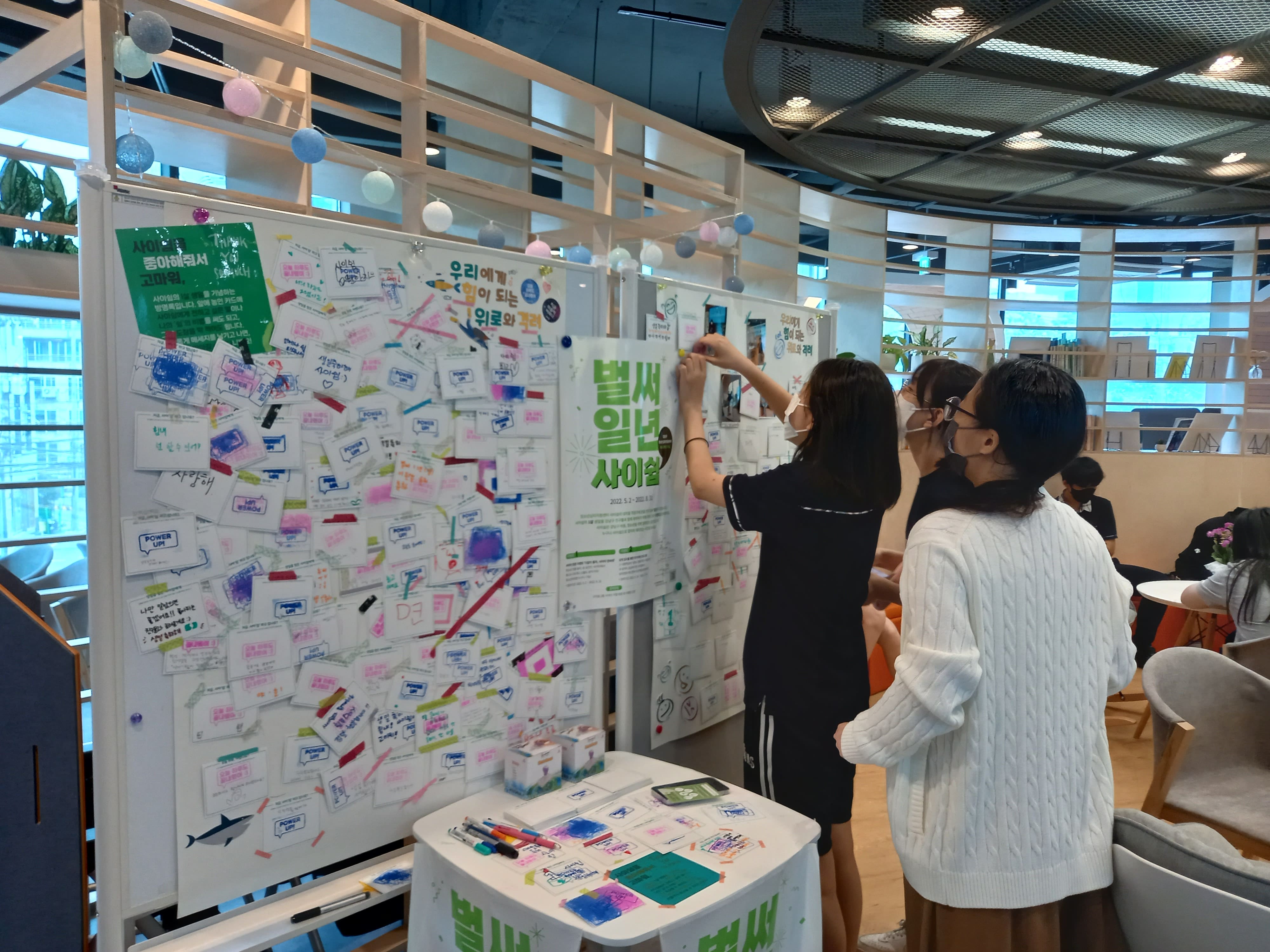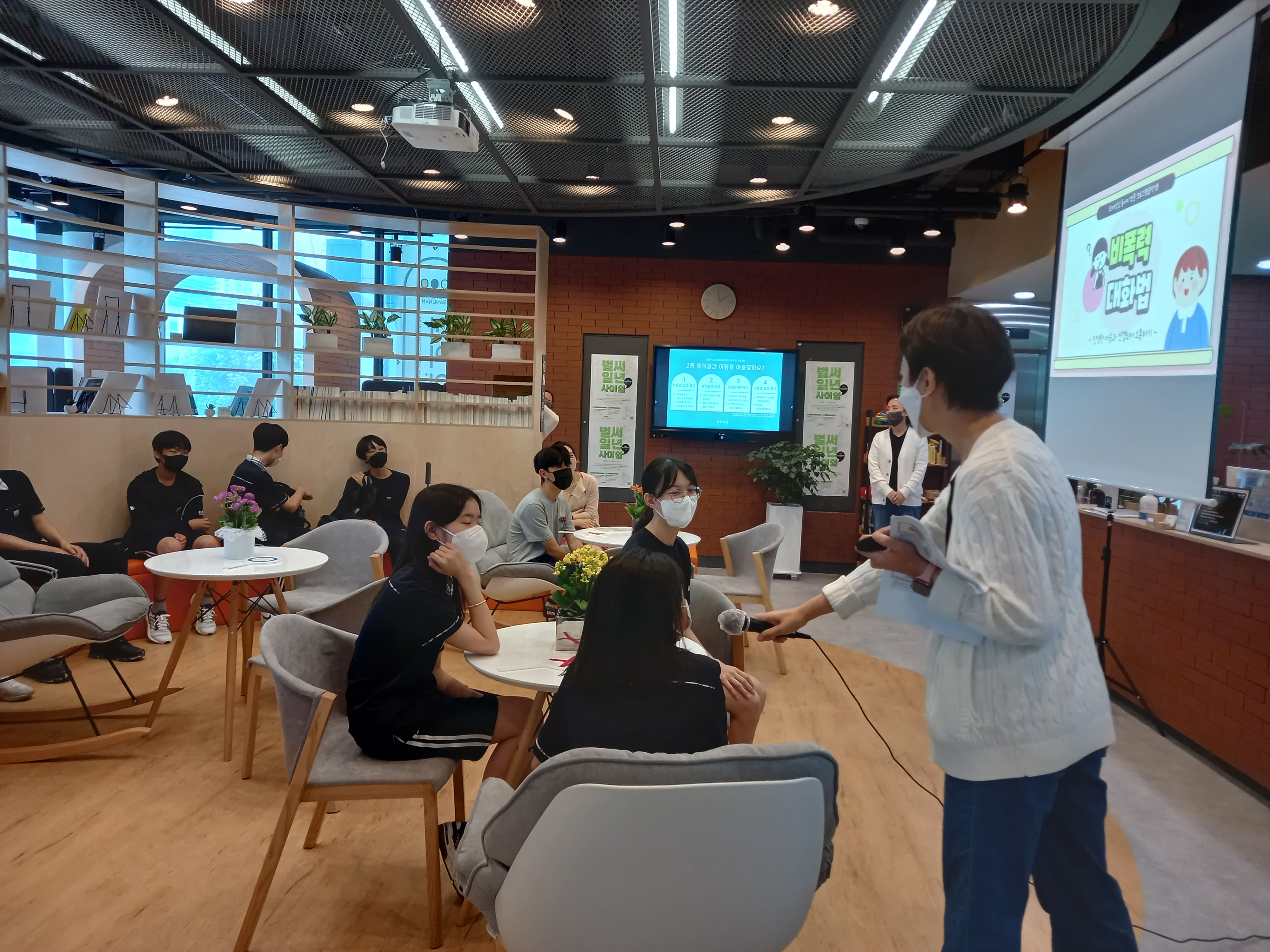 7월 8일 비가 오락가락하던 무더운 오후, 대명중학교 또래상담동아리 친구들이 한줄기 시원한 바람처럼 살랑살랑 사이쉼을 찾아주었습니다.