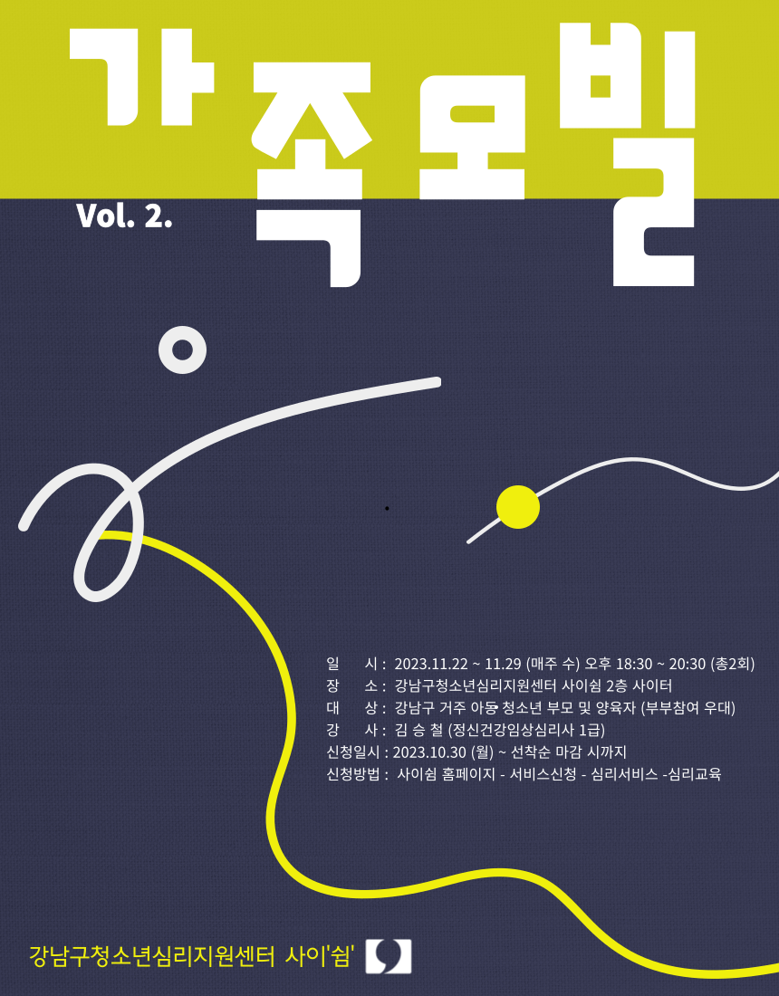 - 장 소 : 강남구청소년심리지원센터 사이쉼 2층 사이터
