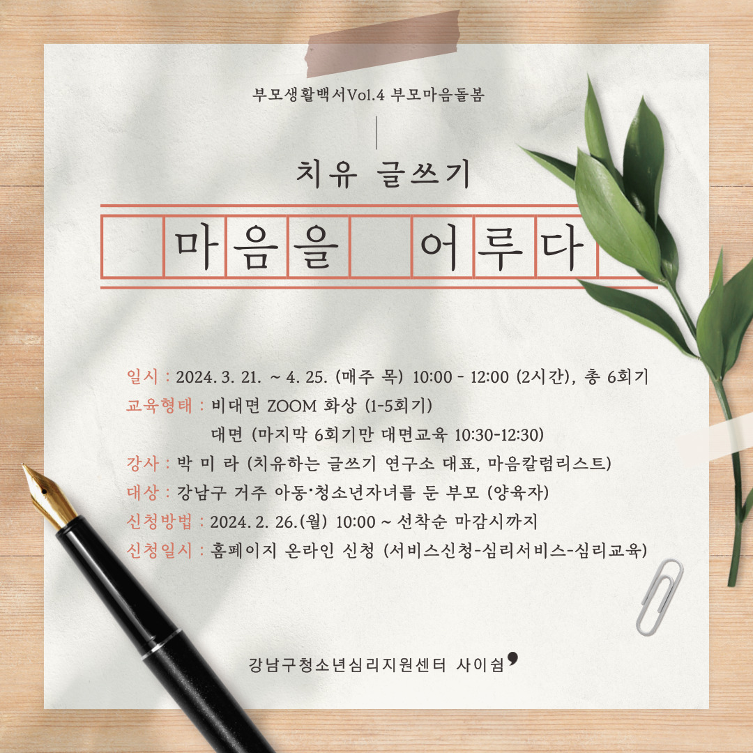 2024 부모생활백서 Guide3. 부모마음돌봄 치유글쓰기 [마음을 어루다]