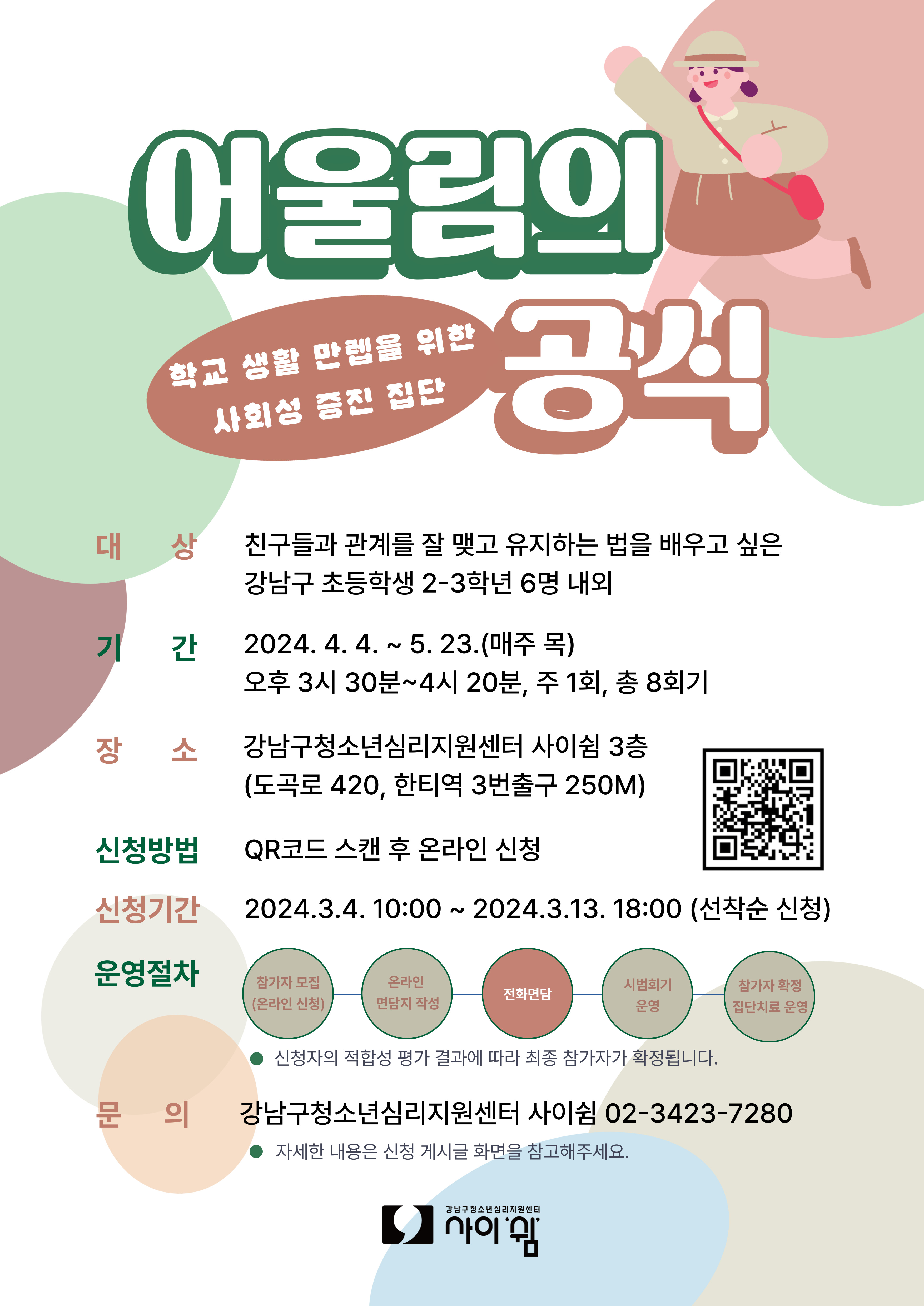 ▶ 문 의 : 강남구청소년심리지원센터 사이쉼 (02-3423-7280)