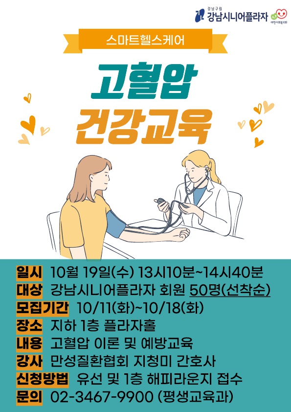 모집대상 : 강남시니어플라자 회원 50명(선착순)