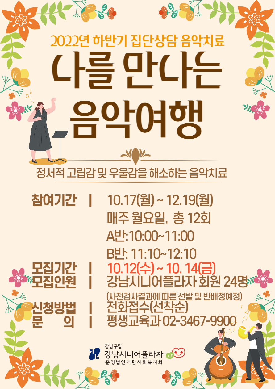 * 대상 : 강남시니어플라자 회원 24명(사전검사 결과에 따라 선발 및 반배정 예정)