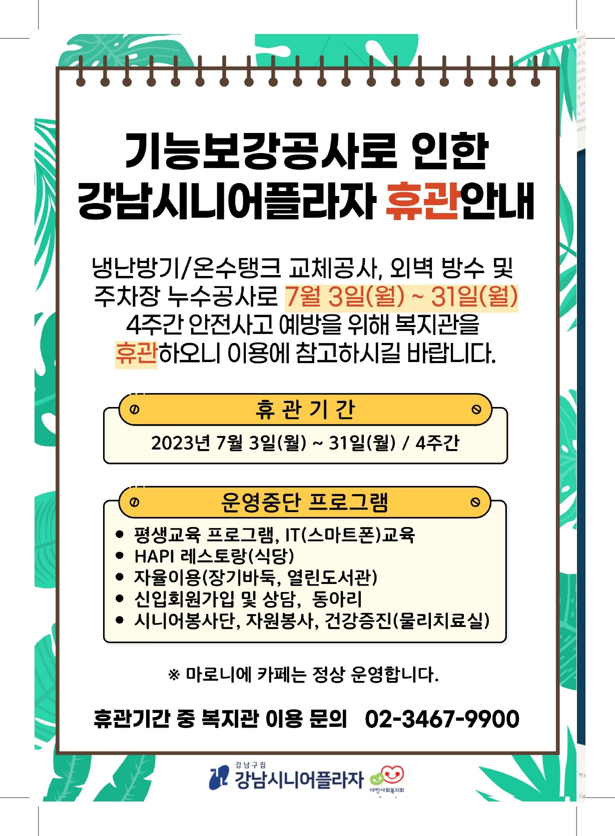 강남시니어플라자에서는 23년도 3분기 평생교육 프로그램을 진행합니다.