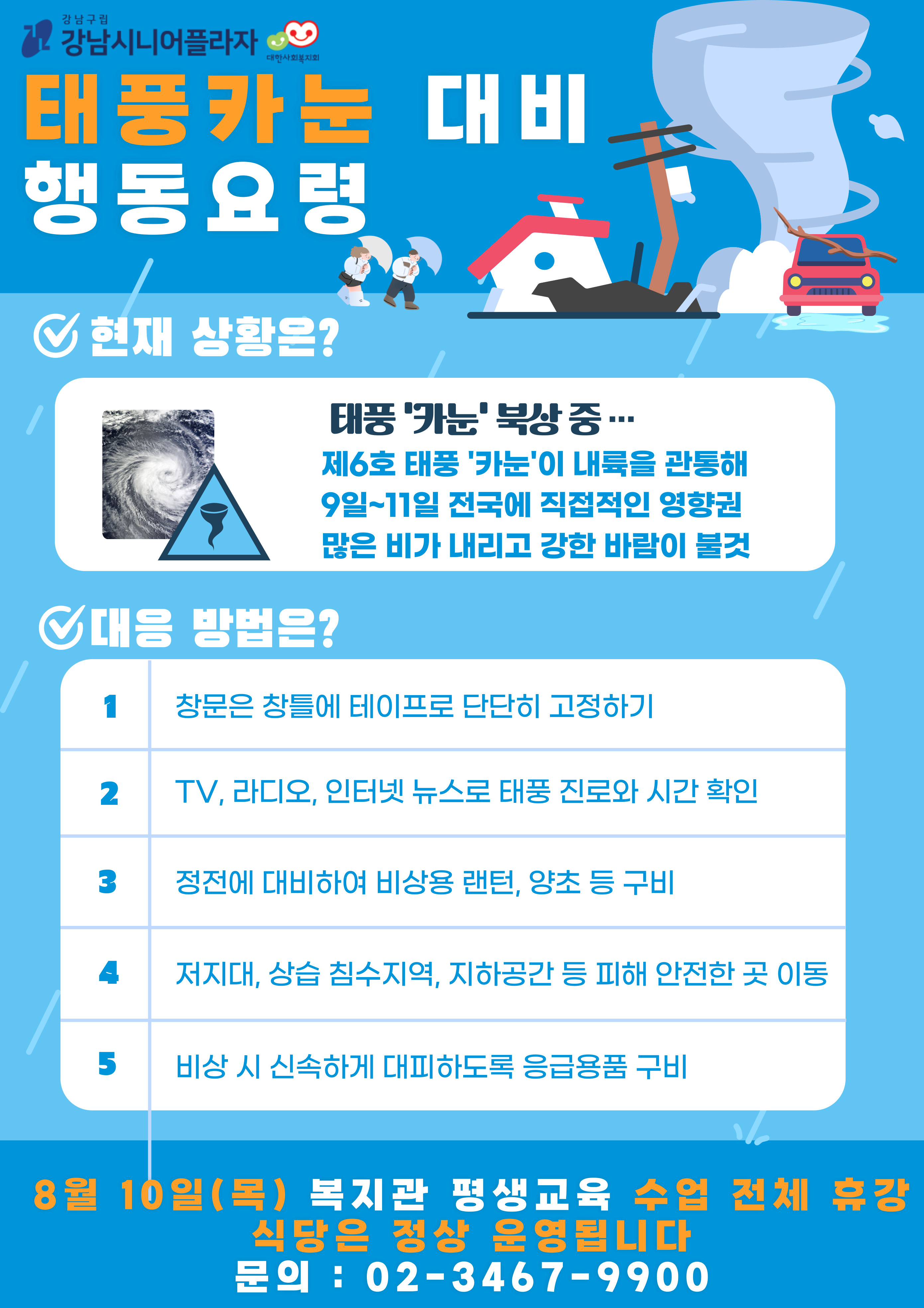 [기관안내] 태풍 카눈 북상 대비 및 복지관 이용 안내