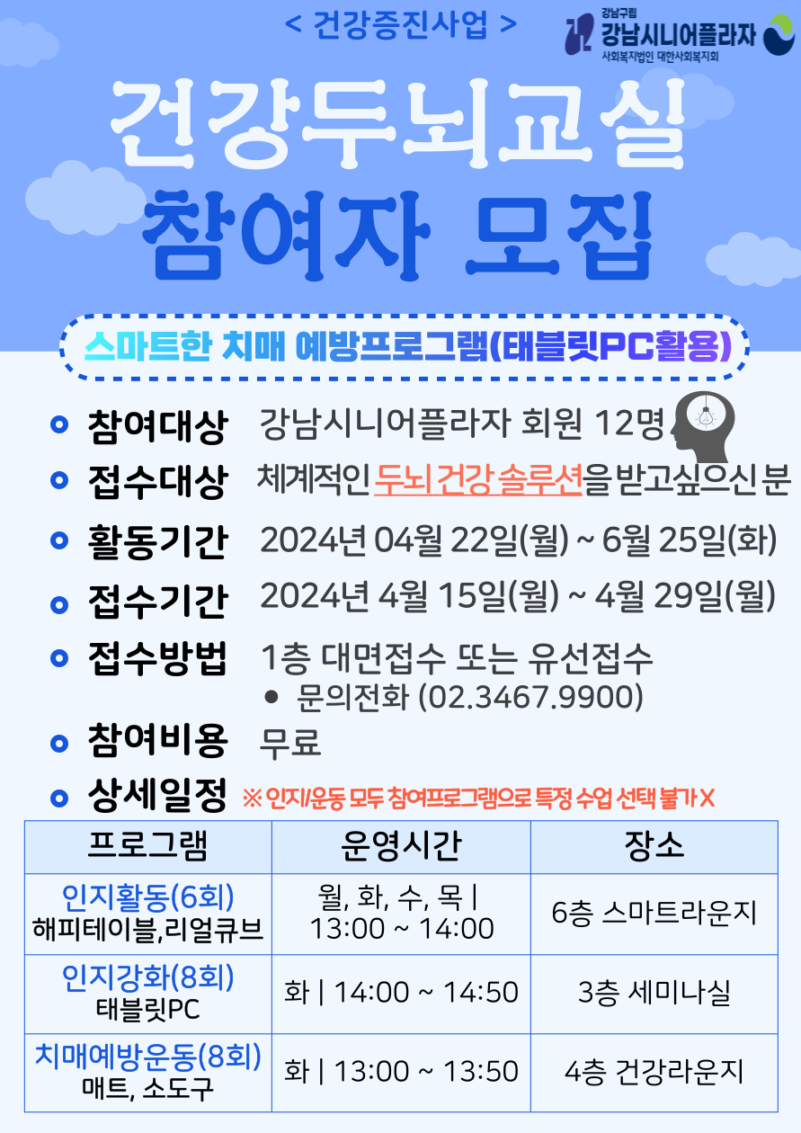 *모집대상 : 강남시니어플라자 회원 12명