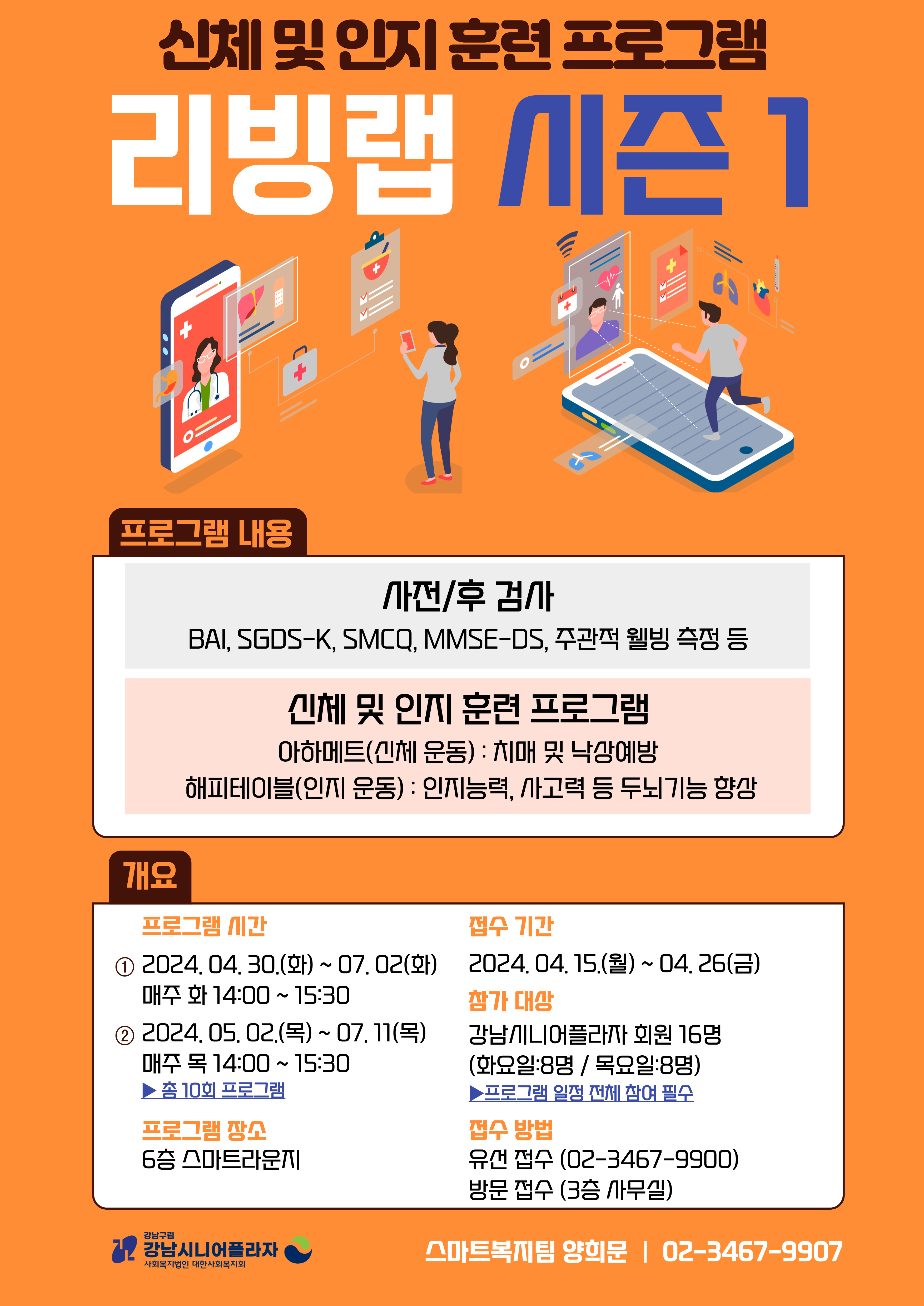 문의 : 강남시니어플라자 스마트복지팀 양희문 대리(02-3467-9907)