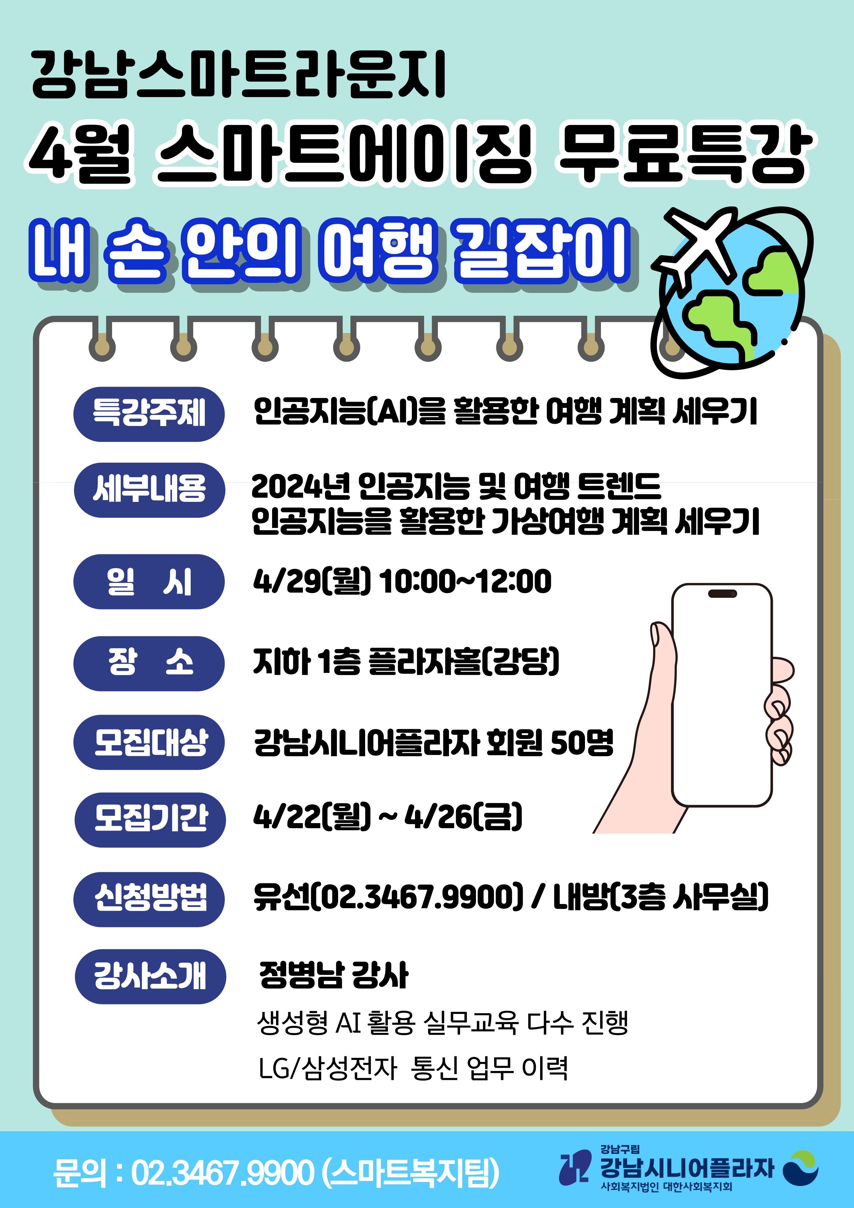 [스마트라운지] 1분기(4월) 스마트 에이징 특강 참여자 모집