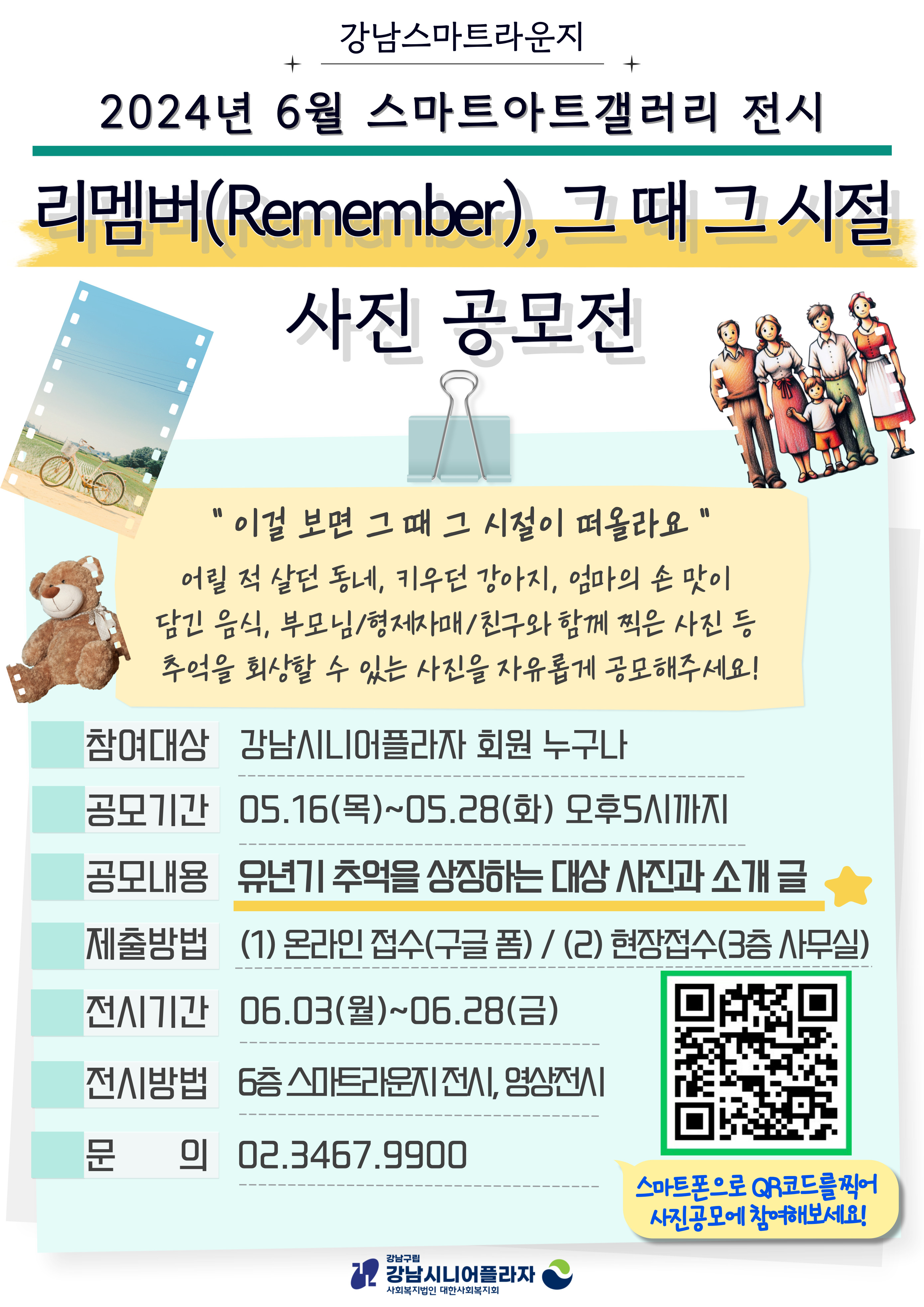 6월 스마트라운지에서는 스마트아트갤러리 '리멤버(Remember), 그 때 그 시절' 사진 공모를 진행합니다.
