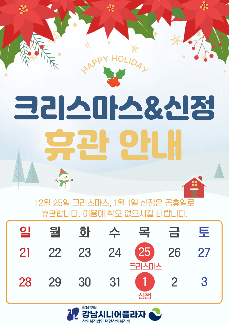 [기관안내]12월~26년 1월 복지관 휴관 안내
