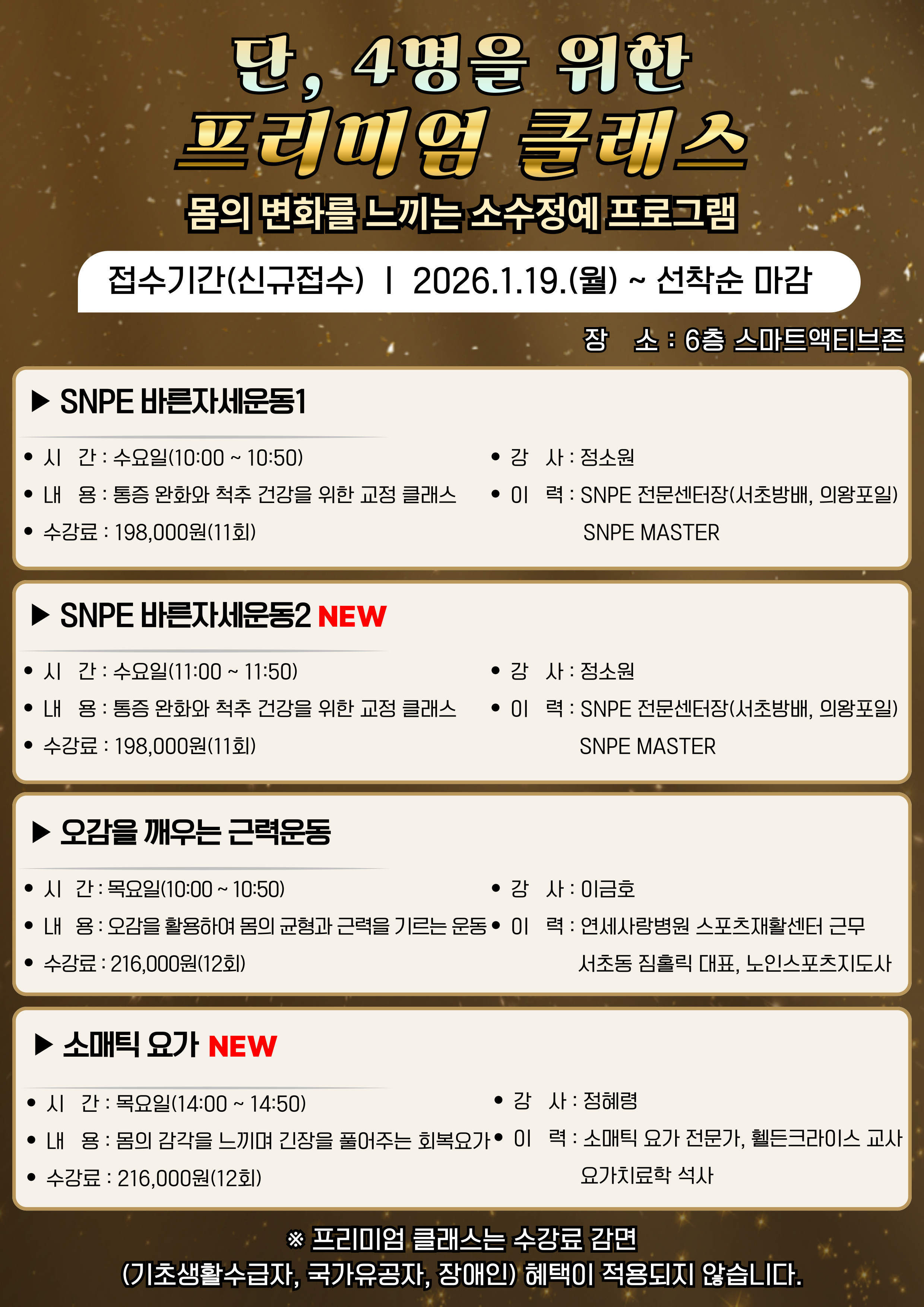 강남시니어플라자에서는 26년도 1분기 평생교육 프로그램(프리미엄 클래스)을 진행합니다.