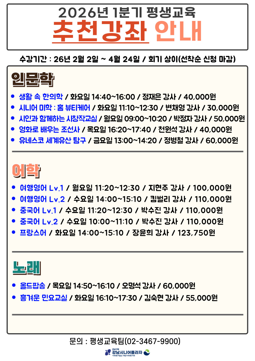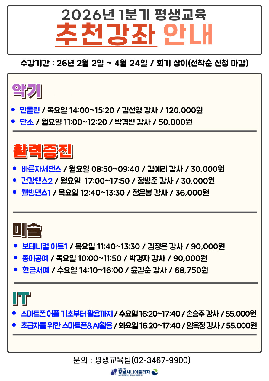 [평생교육] 2026년 1분기 평생교육 추천강좌 안내