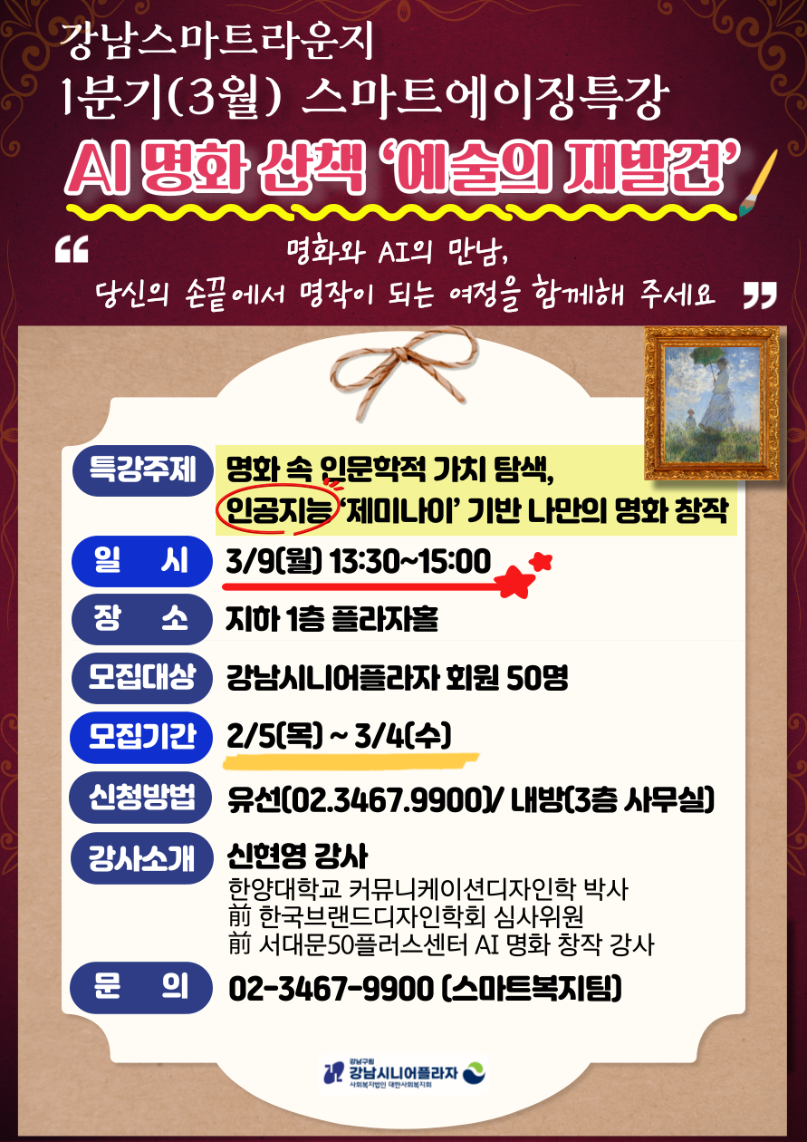 *특강주제 : 명화 속 인문학적 가치 탐색, 인공지능 ‘제미나이’ 기반 나만의 명화 창작