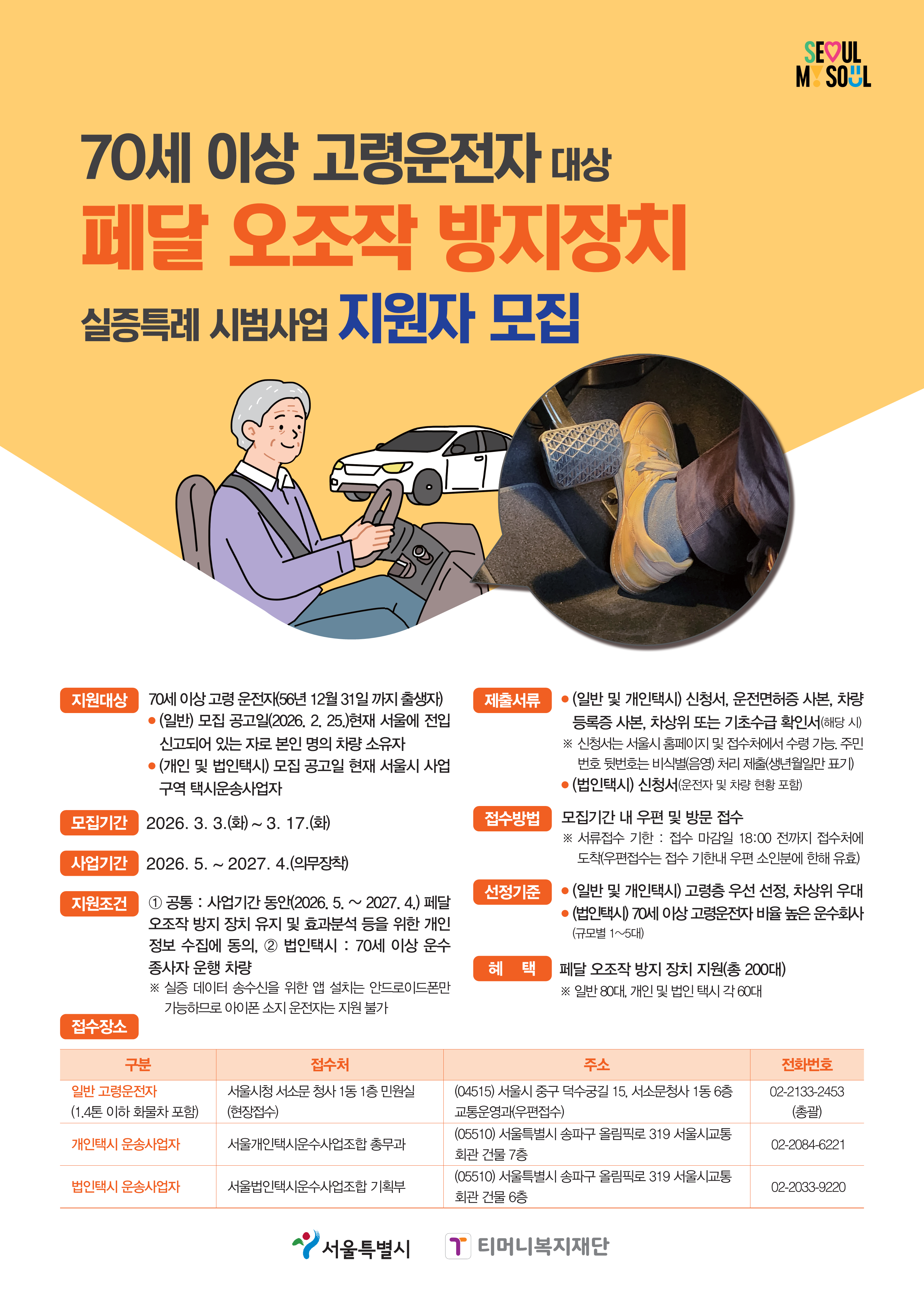 [서울시] 고령운전자 페달 오조작 방지장치 실증특례 시범사업 지원자 모집