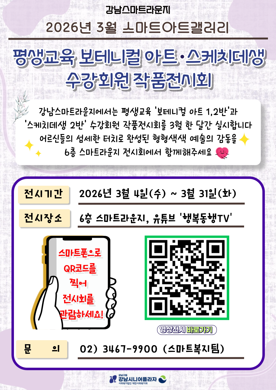 - 전시내용 : 2026년 3월 스마트아트갤러리 평생교육 보테니컬 아트, 스케치데생