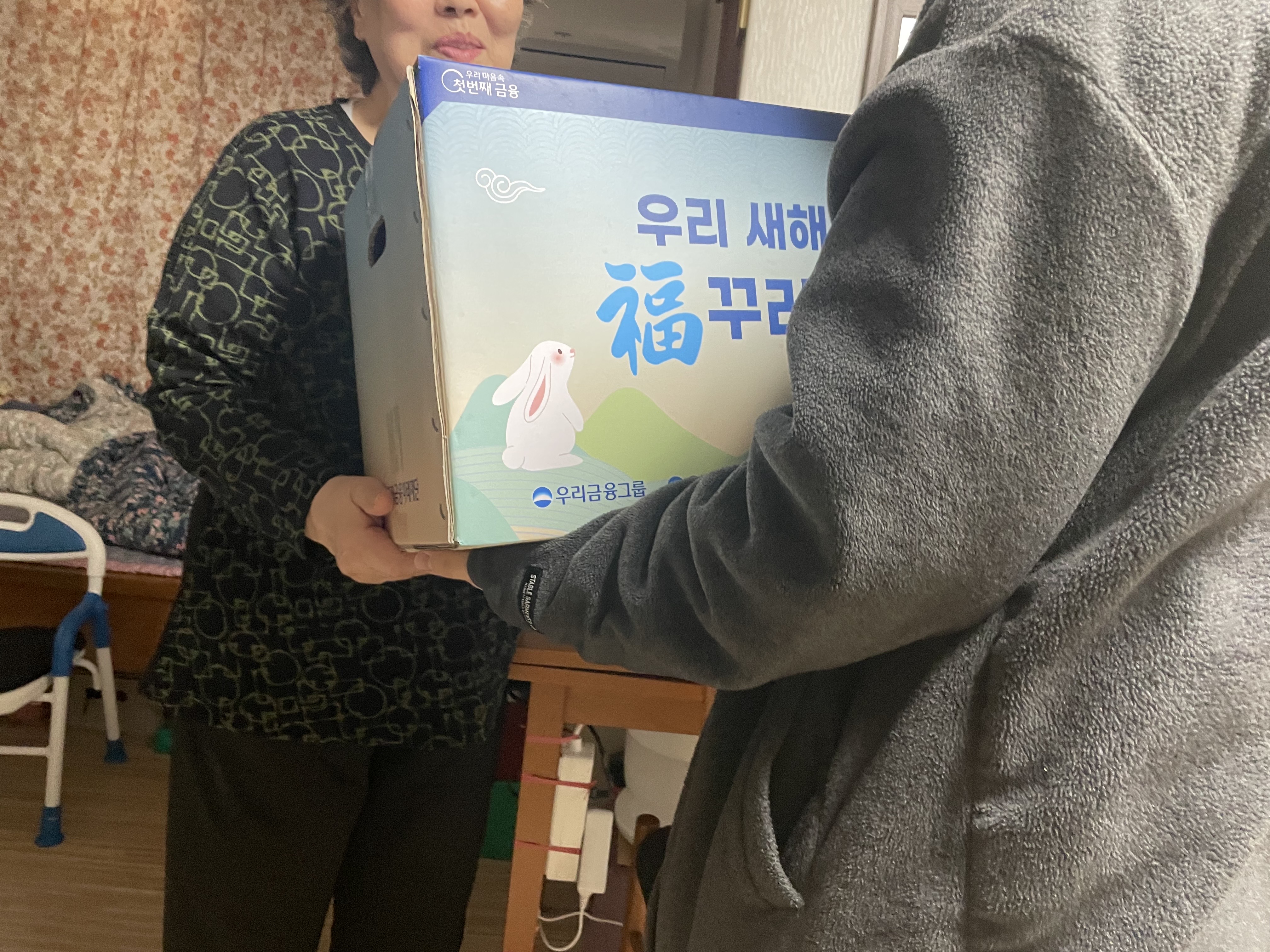 복지사업과에서는 따듯하고 행복한 설명절 맞이를 위해 우리금융미래재단과 함께하는 ‘새해 福 꾸러미‘ 설명절키트 나눔 행사를 진행하였습니다.
