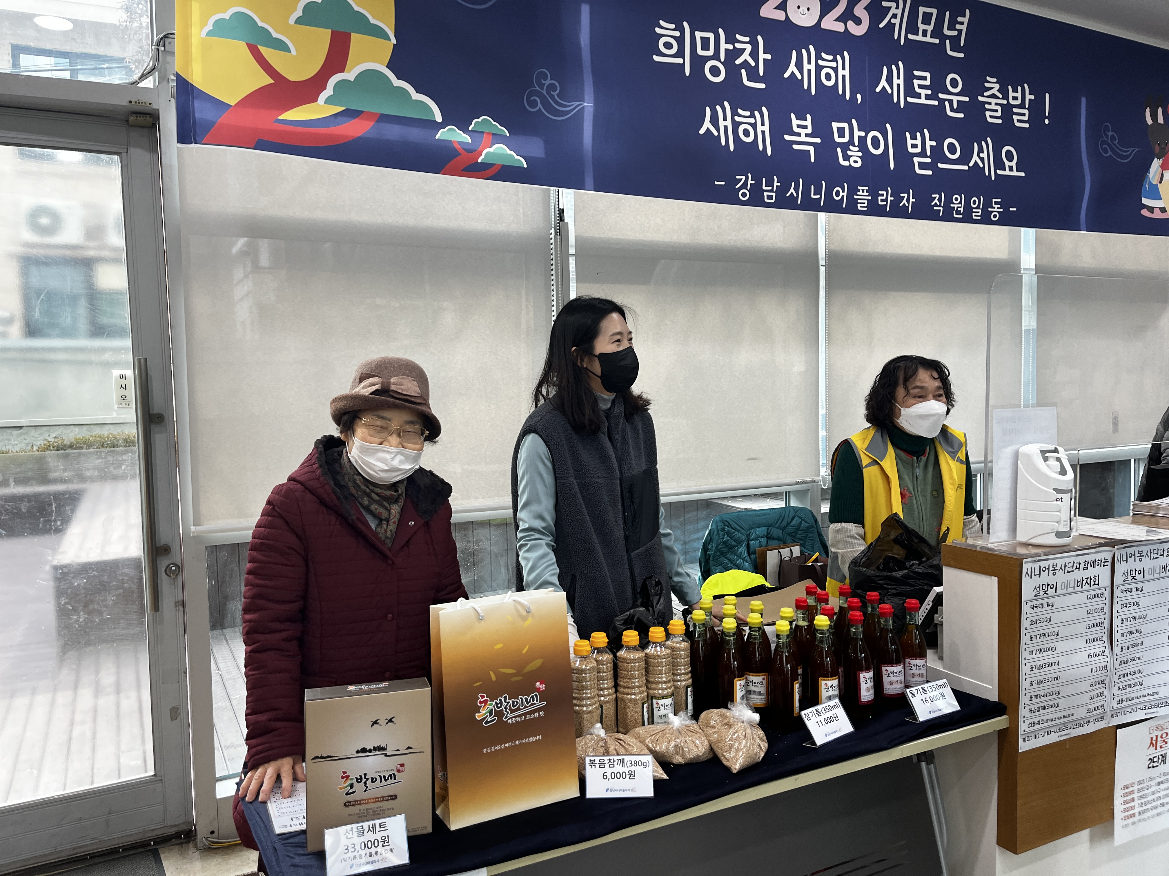 강남시니어플라자에서는 1월 17일(화)~1월 18일(수)까지 시니어 봉사단과 함께하는 설맞이 미니 바자회를 진행하였습니다.