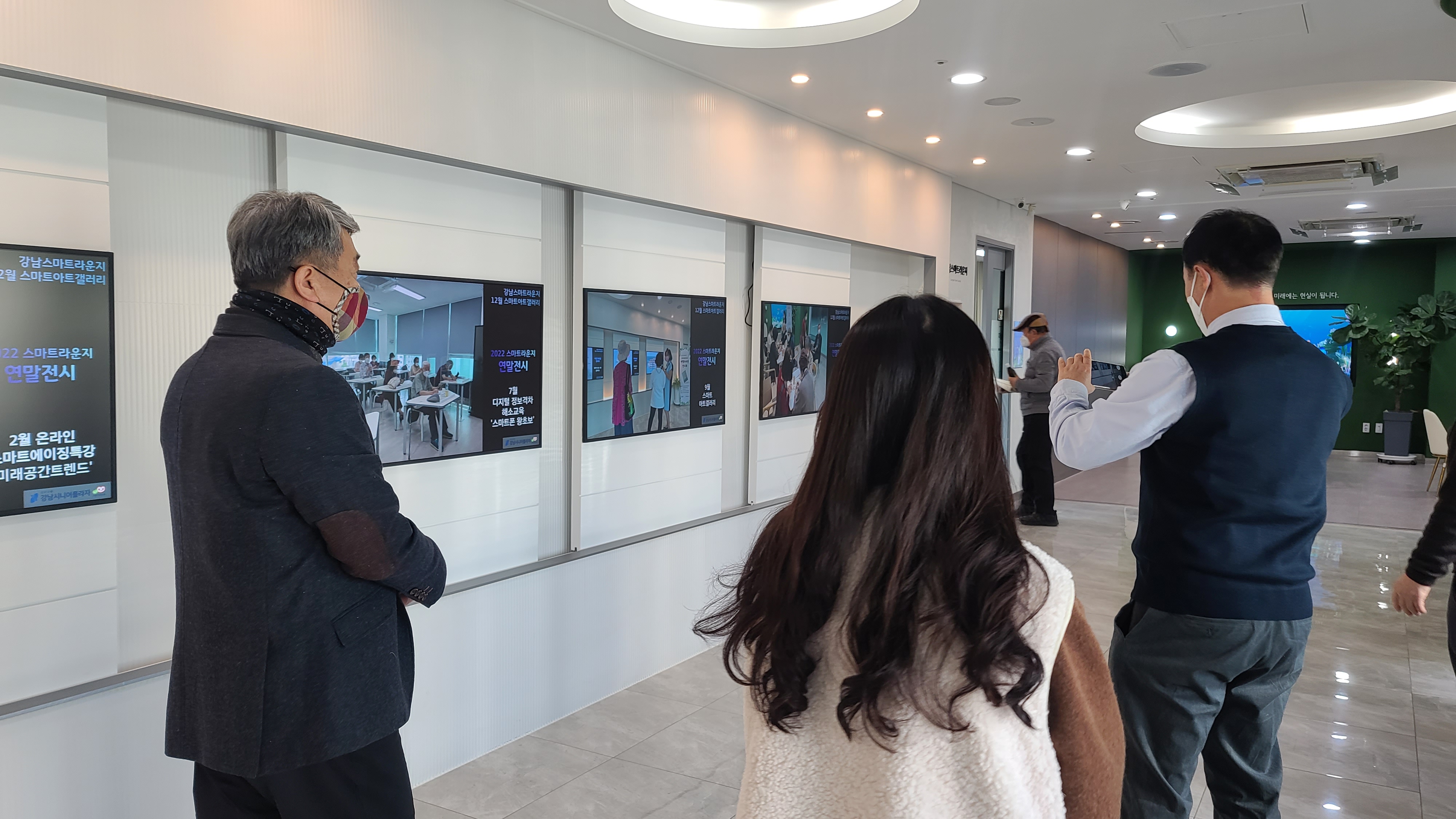 기관의 운영현황, 전반적인 특화 및 중점사업, 예산 등에 대해 소개하고 질의하는 시간을 가지고, 스마트라운지 라운딩을 통해 스마트 아트갤러리, 스마트액티브존을 체험하였습니다.