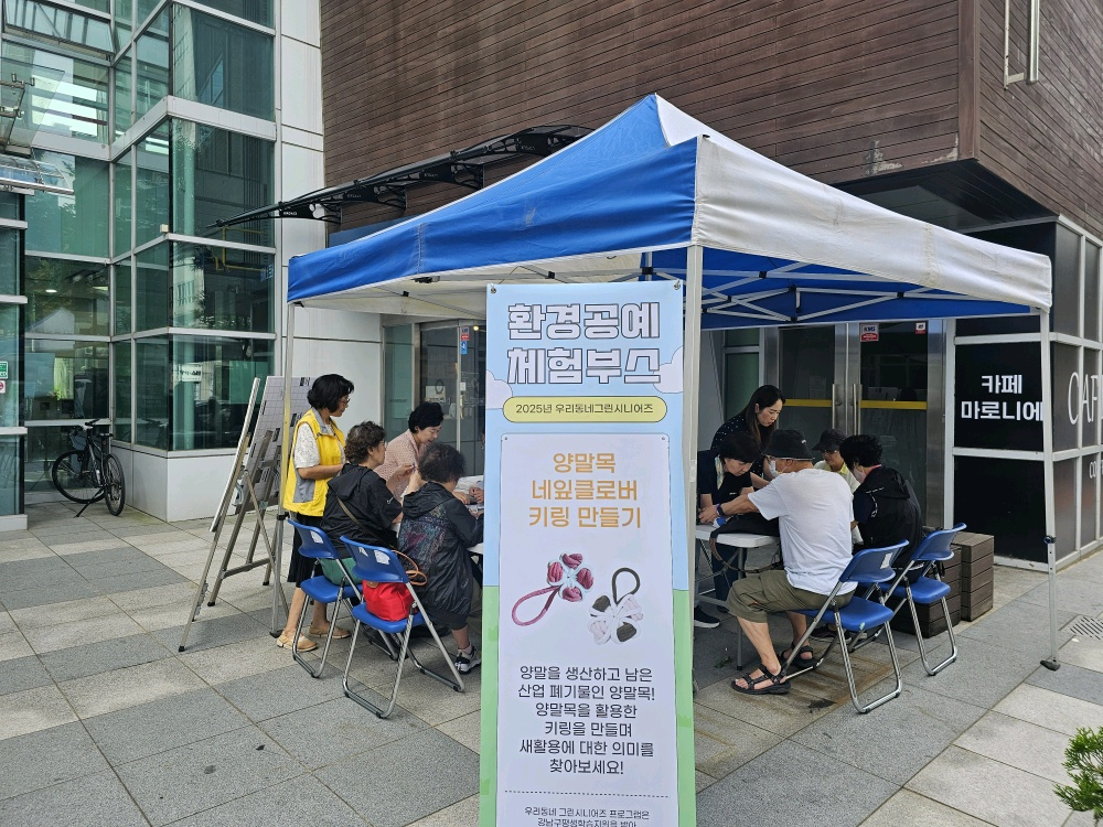 ‘우리동네그린시니어즈’는 신노년세대를 대상으로 한 환경실천가 양성 프로그램으로, 참여자들은 총 4번의 지구방위대 체험부스를 통해 환경 공예 교육에서 배운 것들을 기관 회원 및 지역주민과 나누는 시간을 가졌습니다.