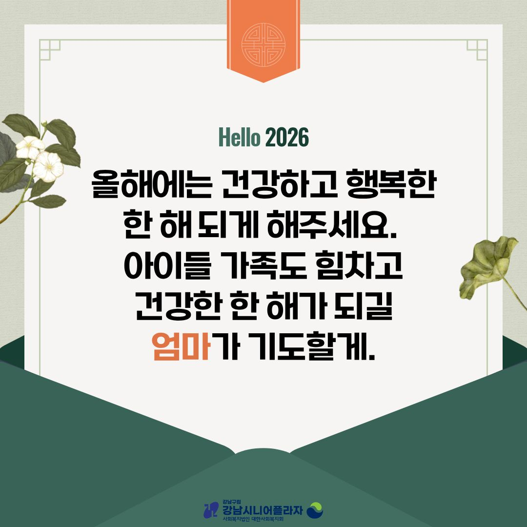 2026년 한 해, 건강과 행복이 가득하시길 바랍니다. 감사합니다.