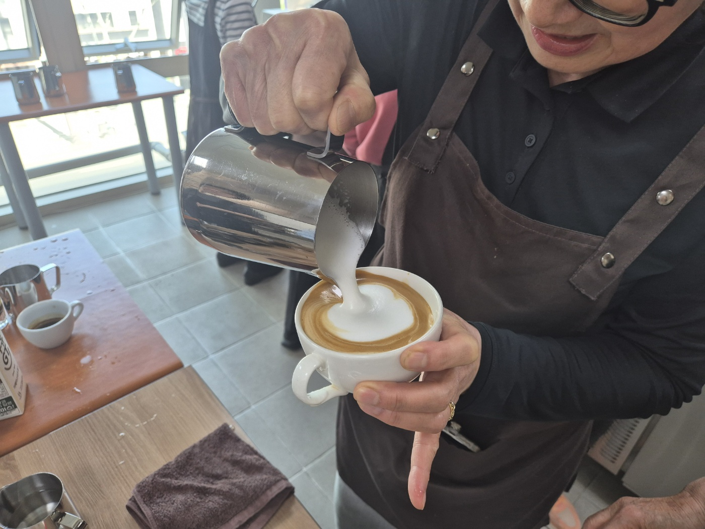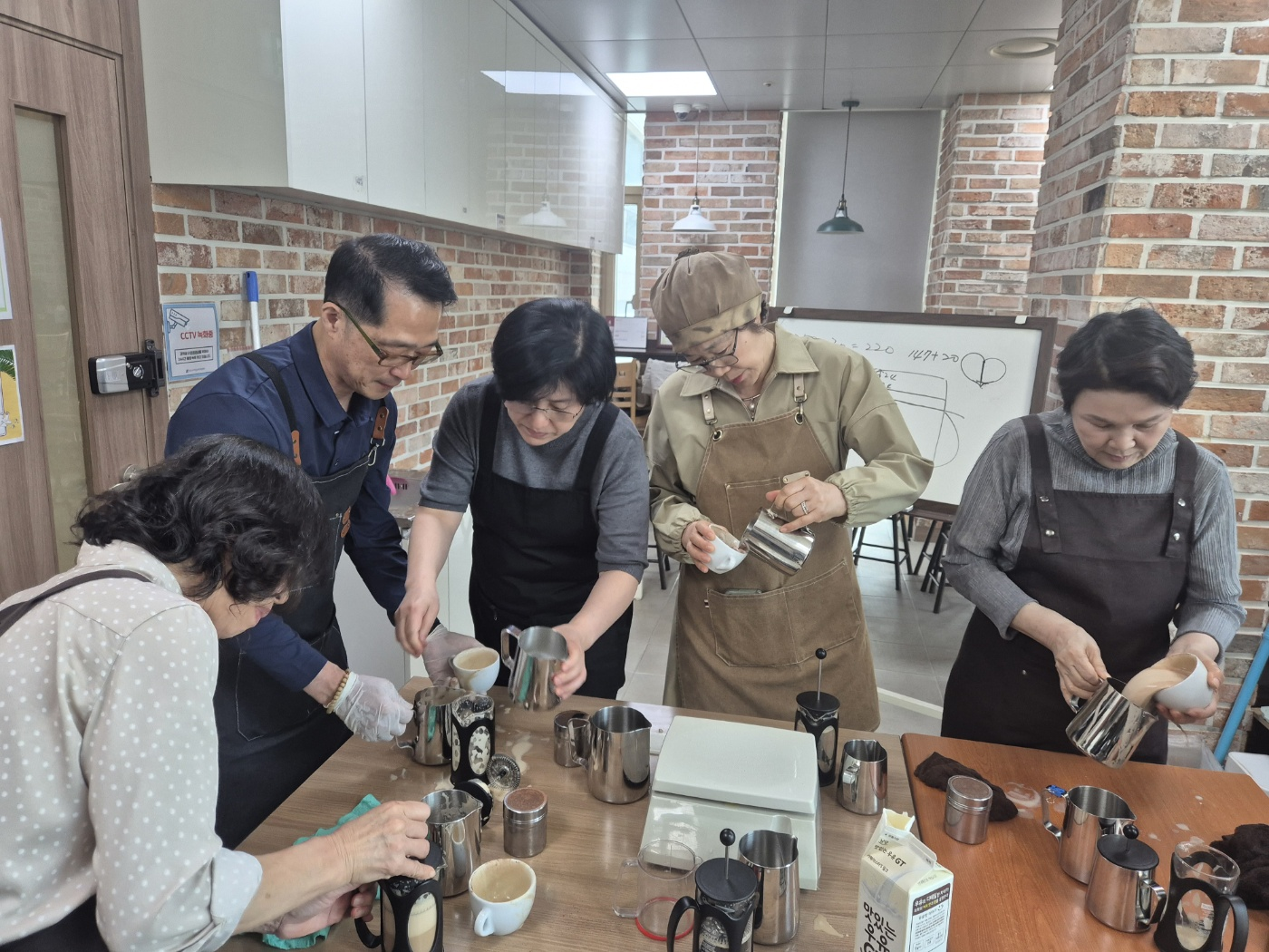 우유 스티밍 기술과 라떼아트(하트 모양 표현) 실습을 진행하여