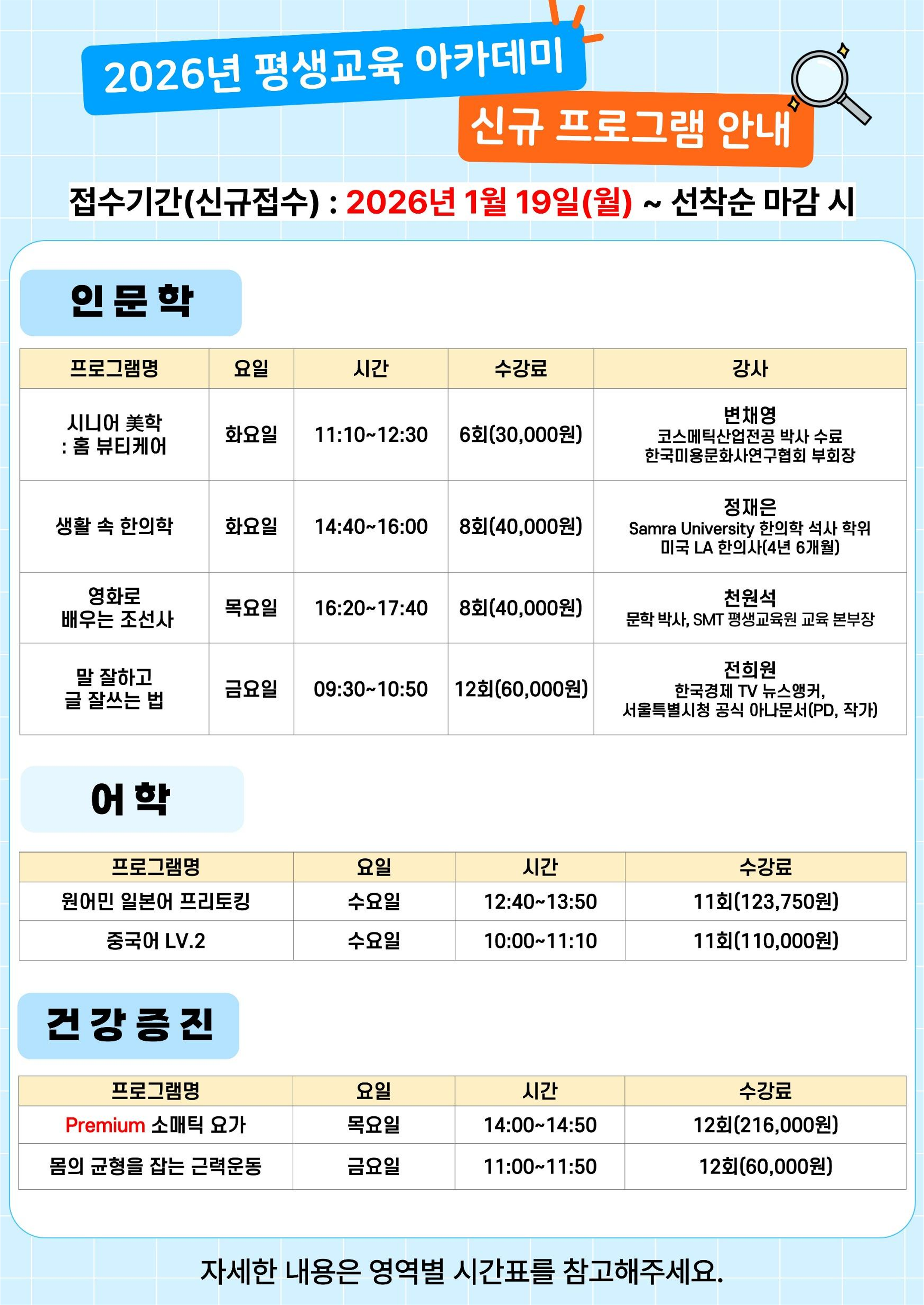 [평생교육]2026년 1분기 평생교육 프로그램 안내