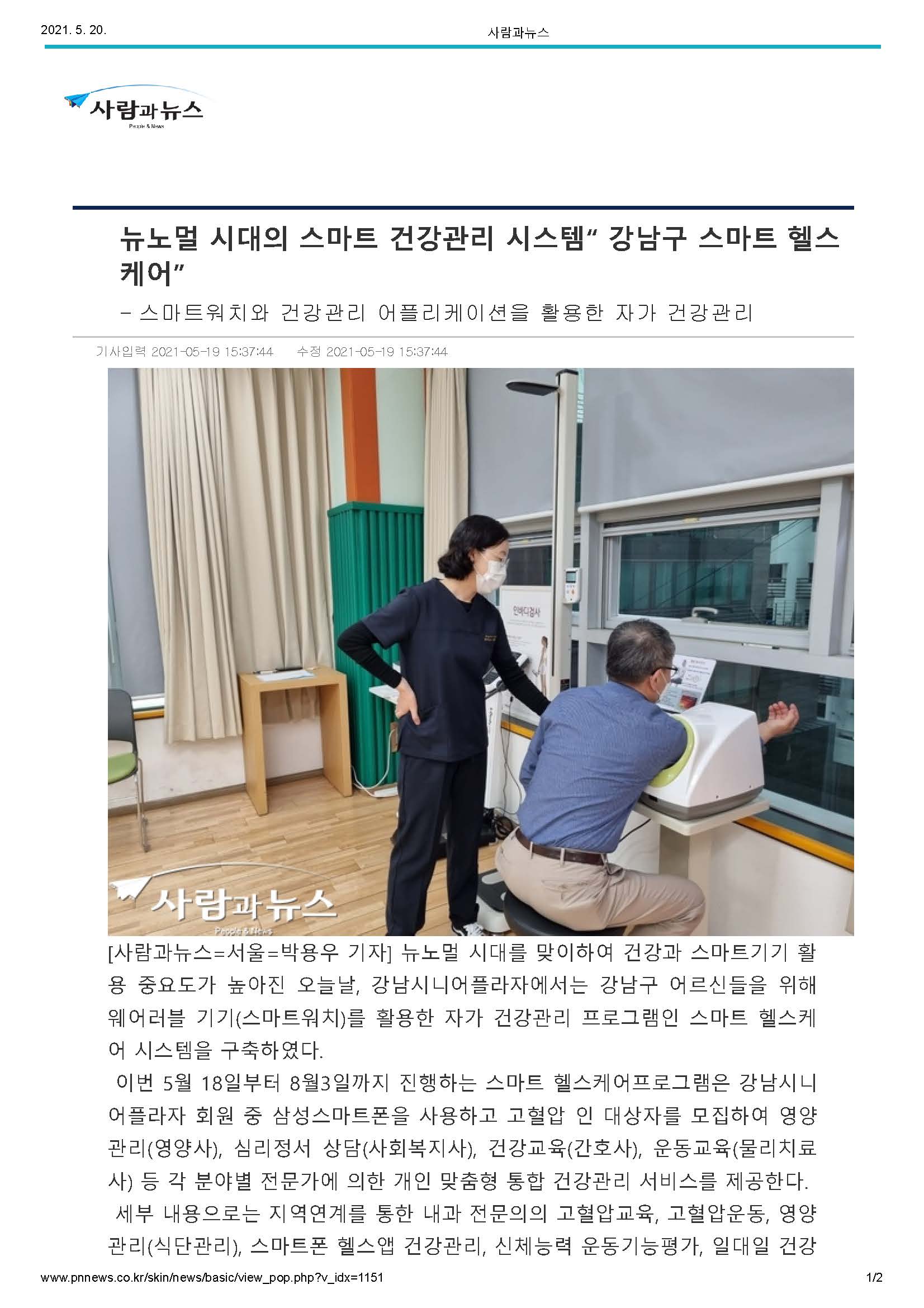 [2021.05.19 사람과뉴스] 뉴노멀 시대의 스마트 건강관리 시스템 '강남구 스마트 헬스케어'