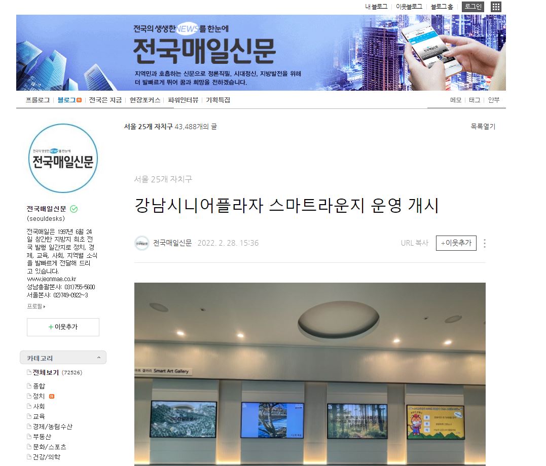 [2022.02.28 전국매일신문]강남시니어플라자, 스마트라운지 운영 개시