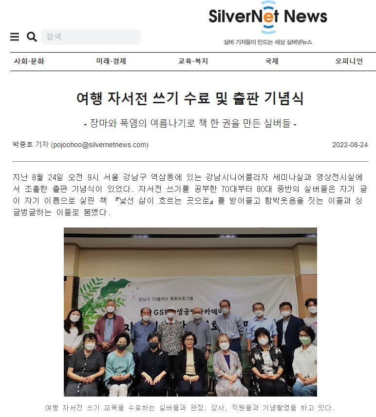 [2022.08.24 실버넷] 여행자서전 쓰기 수료 및 출판 기념식 장마와 폭염의 여름나기로 책 한권을 만든 실버들