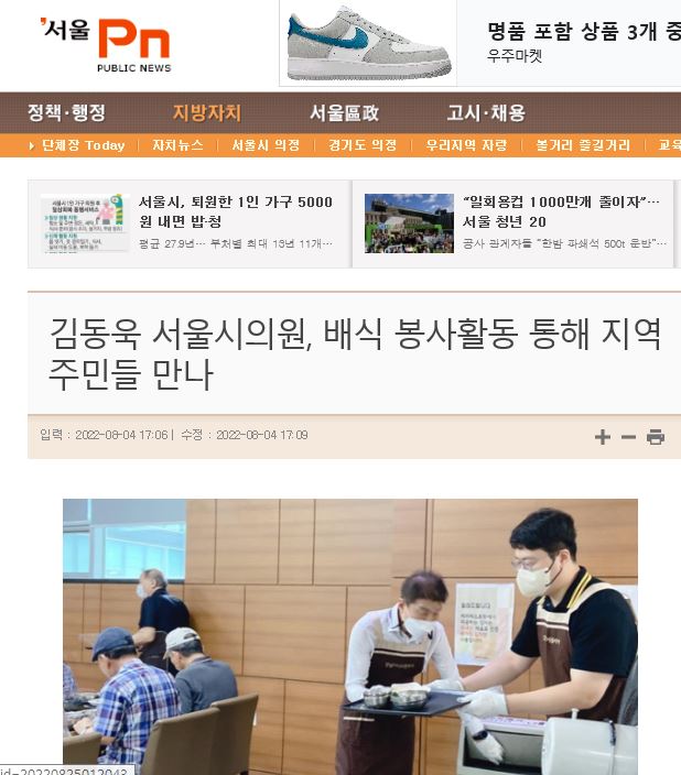[2022.08.04 서울퍼블릭뉴스 ] 김동욱 서울시의원, 배식 봉사활동 통해 지역 주민들 만나