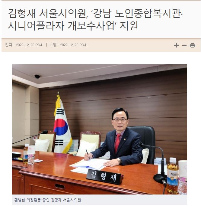 [2022.12.28. 서울Pn] 김형재 서울시 의원 강남 노인복지관, 시니어플라자 개보수사업 지원