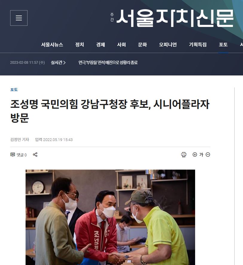 [2022.05.19.서울자치신문] 조성명 국민의 힘 강남구청장 후보, 시니어플라자 방문
