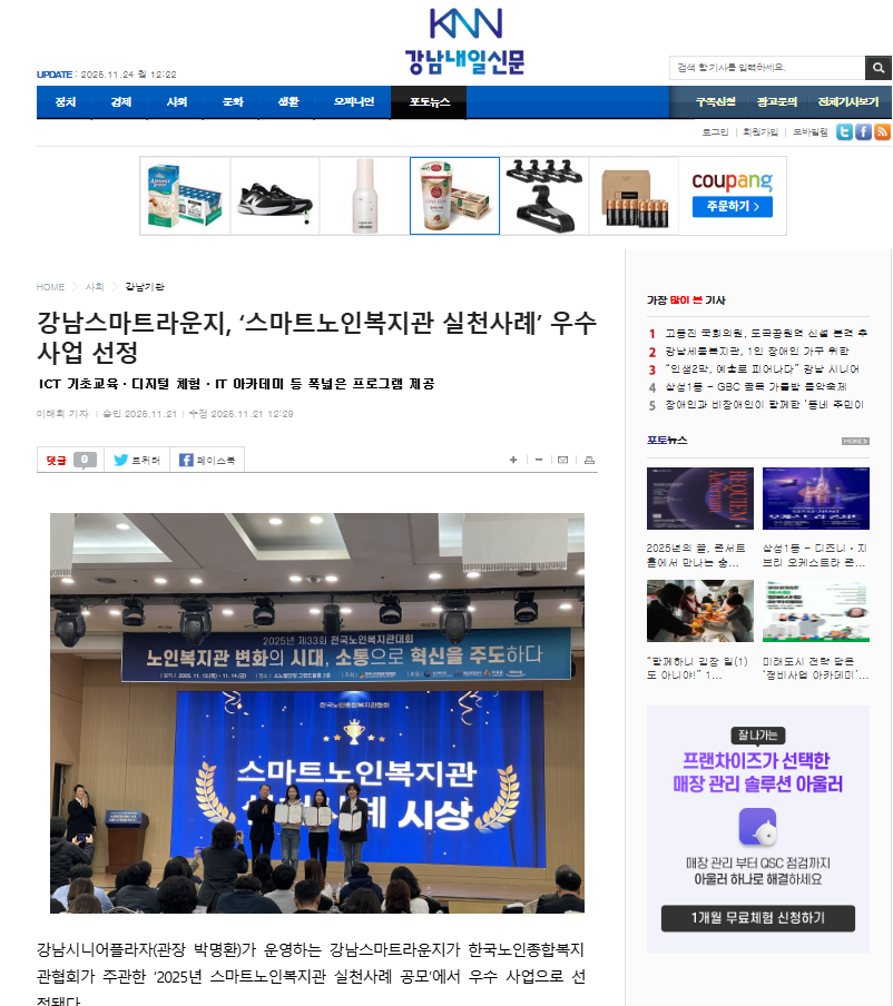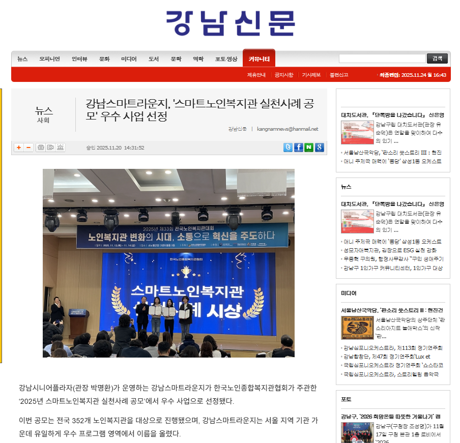 [2025.11.21. 강남내일신문 외 2건] 스마트노인복지관 실천 우수사례 수상