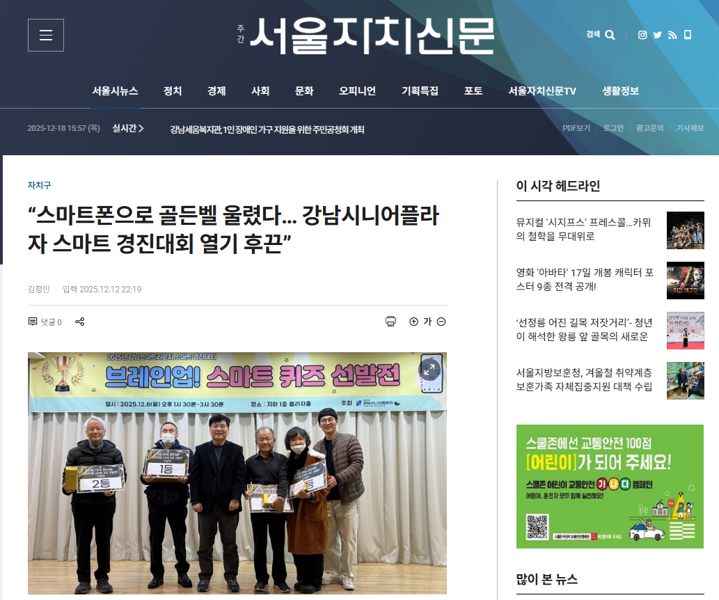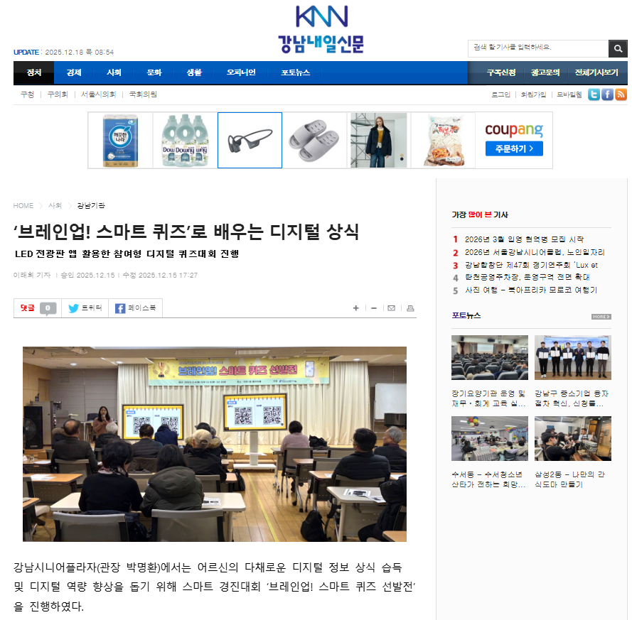 [2025.12.12 서울자치신문 외 2건] 브레인업! 스마트 퀴즈 선발전