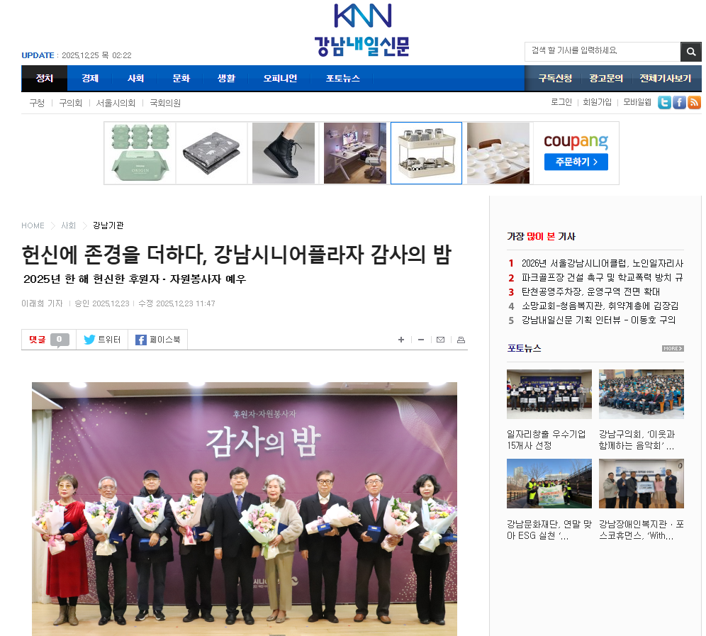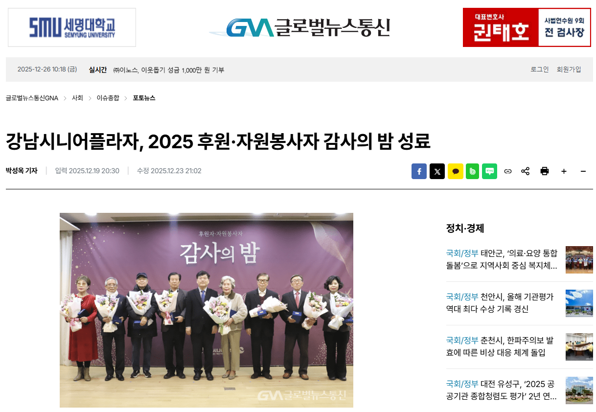 [2025.12.25. 서울자치신문 외 2건]강남시니어플라자, 2025후원 자원봉사자 감사의 밤 성료