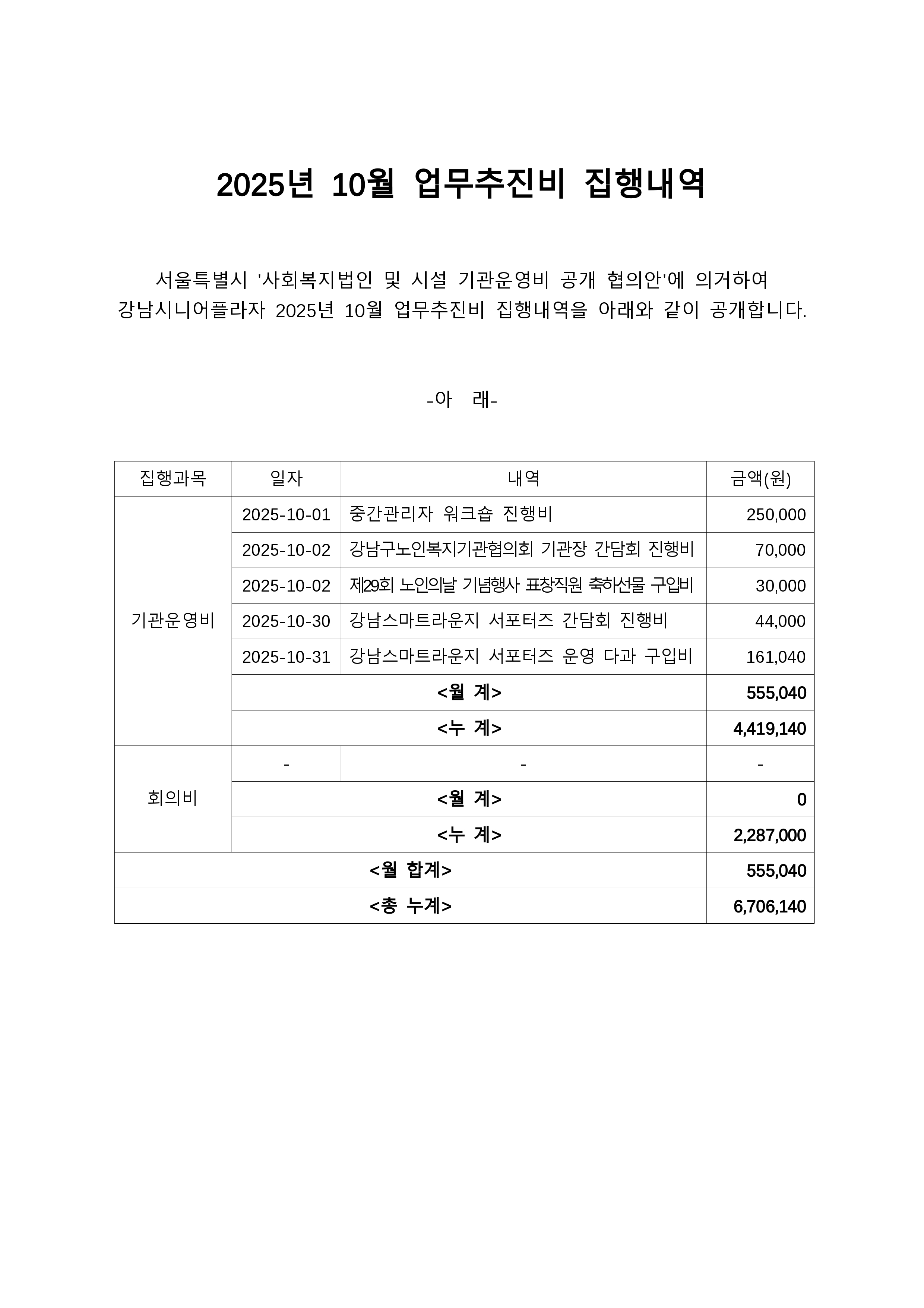 * 법인·시설 지원시스템 업무추진비 사용내역 공시