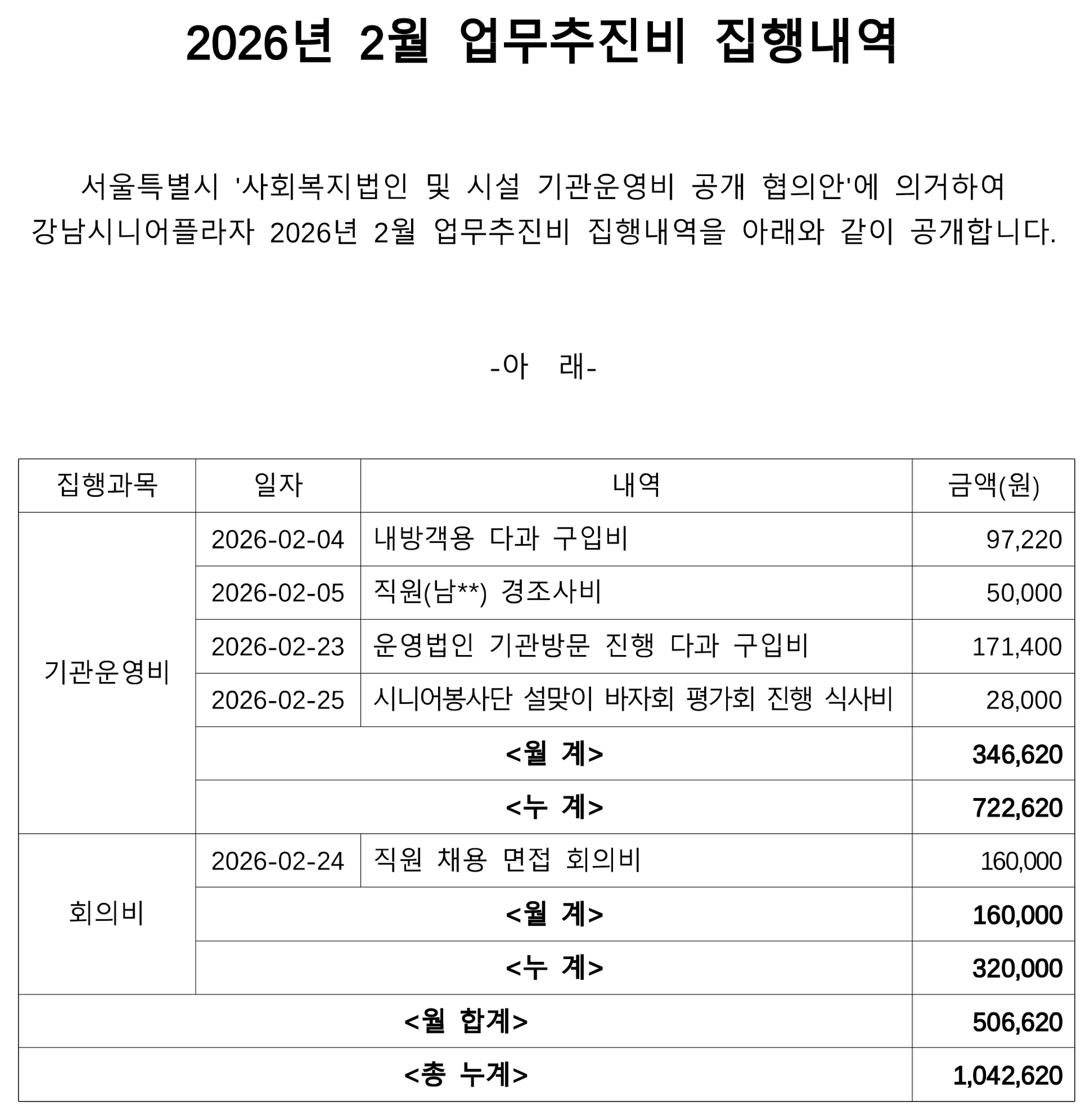 * 법인·시설 지원시스템 업무추진비 사용내역 공시