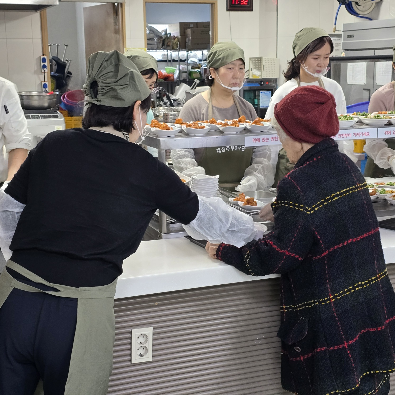 대상(주) 청정원에서 3월 간식으로 초코파운드케이크를 후원하였으며, 청정원 주부봉사단은 어르신들에게 정성껏 준비한 간식을 전달드리며 배식 및 질서유지를 위한 봉사활동을 진행하였습니다.