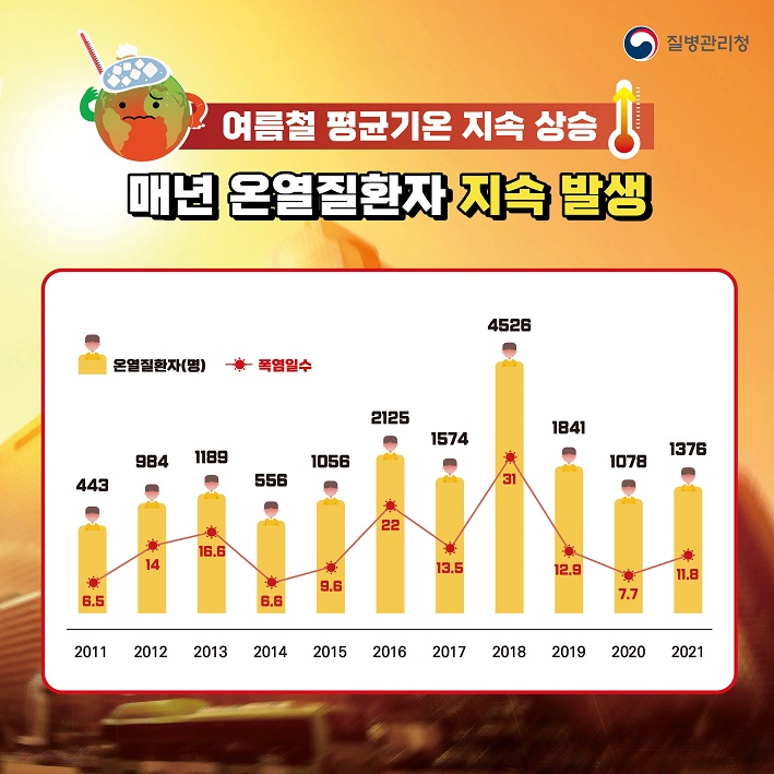 여름철 평균기온 지속 상승으로 매년 온열질환자 지속적 발생