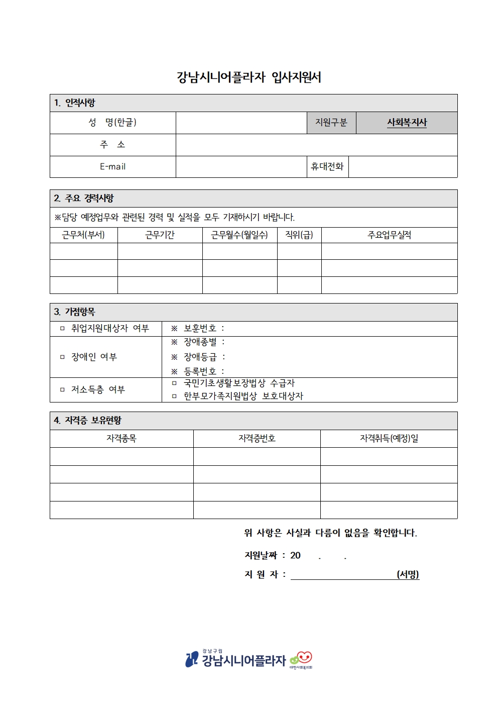 [채용공고] 강남시니어플라자 사회복지사(정규직), 스마트라운지 전담인력(계약직) 채용 최종 결과 안내