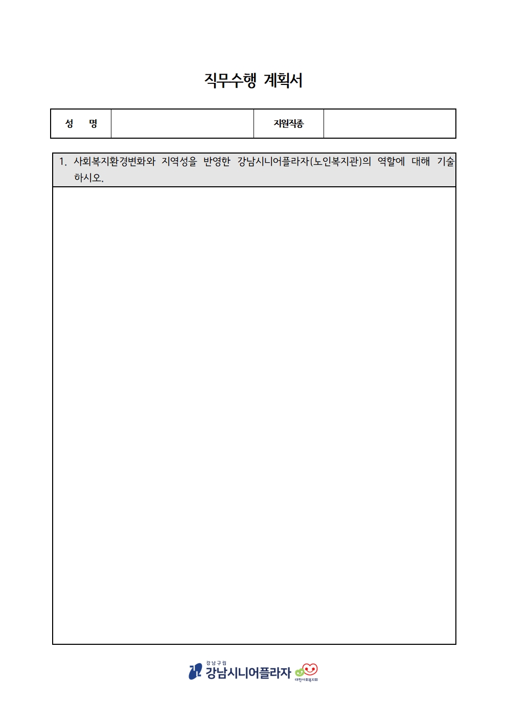 [채용공고] 강남시니어플라자 직원(정규직)채용 공고