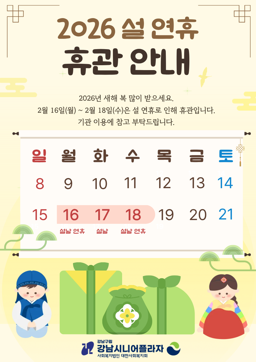 - [기관안내] 2026년 2월 복지관 휴관 안내 2026-01-30