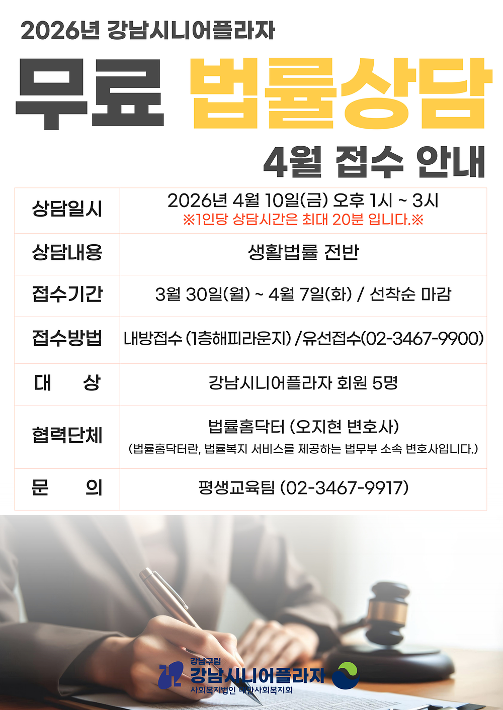 [평생교육] 2026년 4월 1:1 무료 법률상담 신청 안내 클릭해서 자세히보기 -